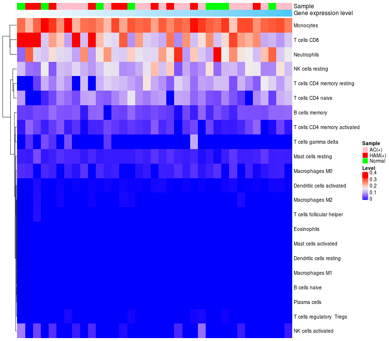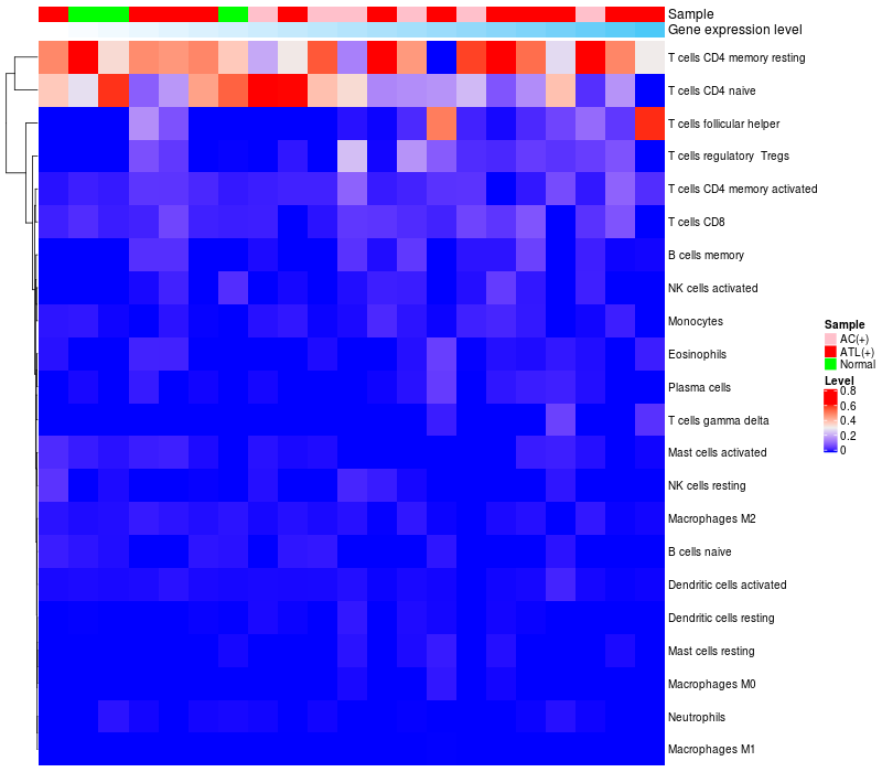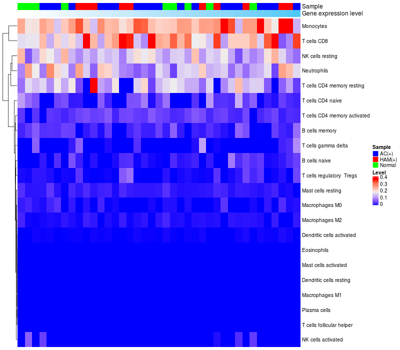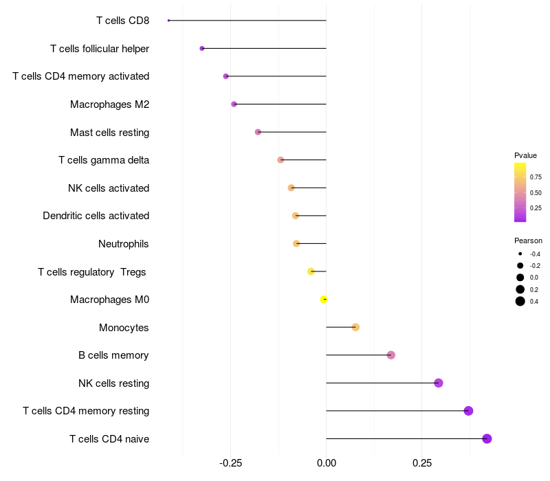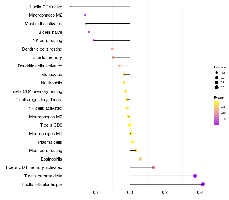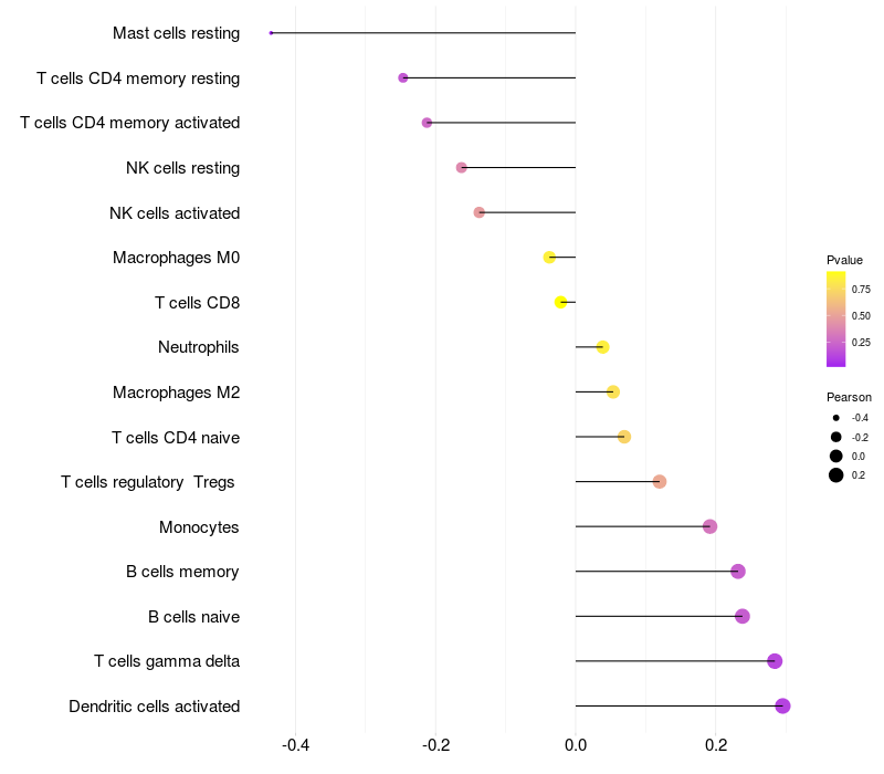 Lollipop of TTC21A expression and immune infiltrating cell level correlation result in HTLV1+ samples