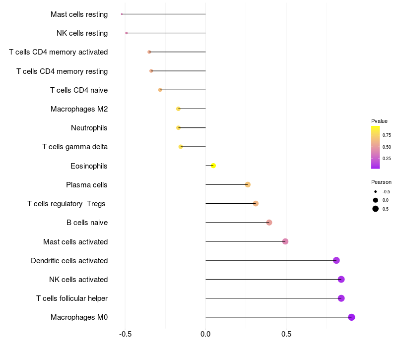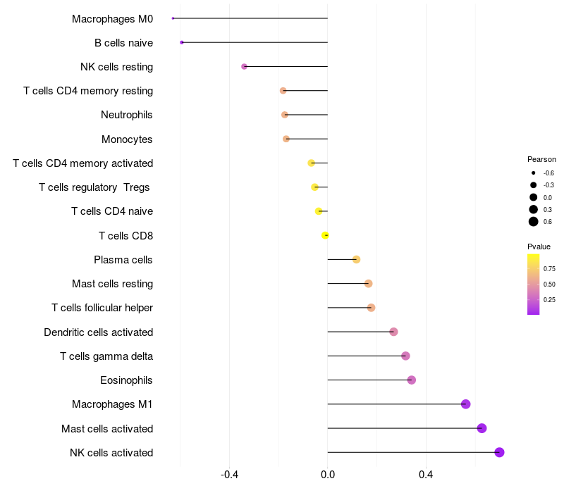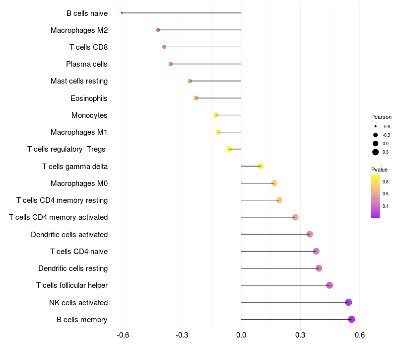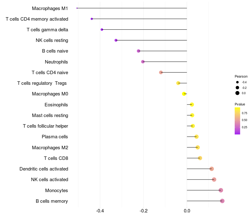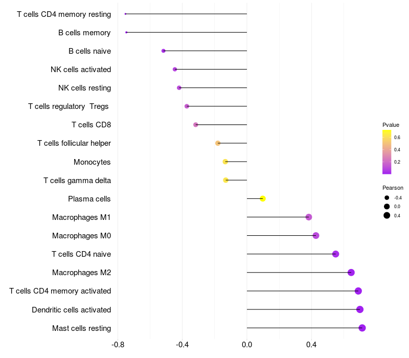 Lollipop of TTC21B expression and immune infiltrating cell level correlation result in EBV+ samples