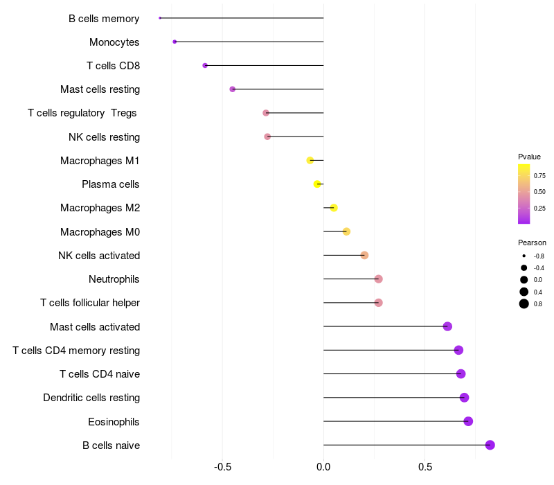 Lollipop of TTC23 expression and immune infiltrating cell level correlation result in HBV+ Liver cirrhosis samples