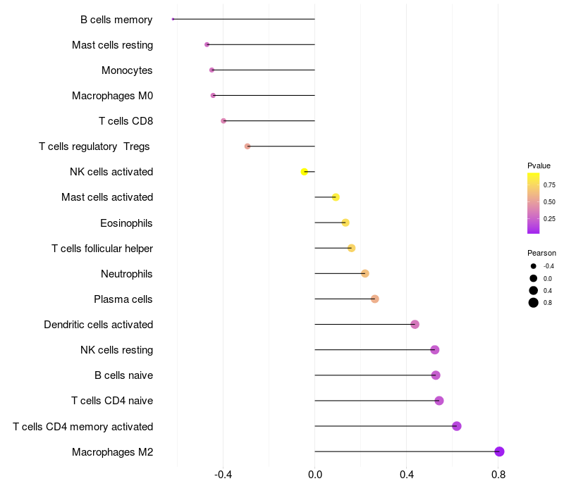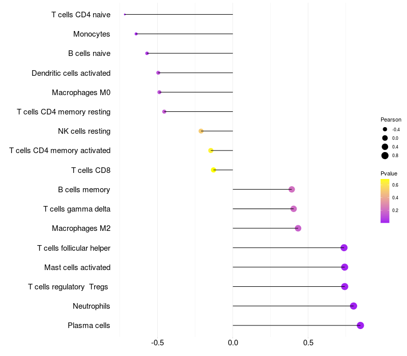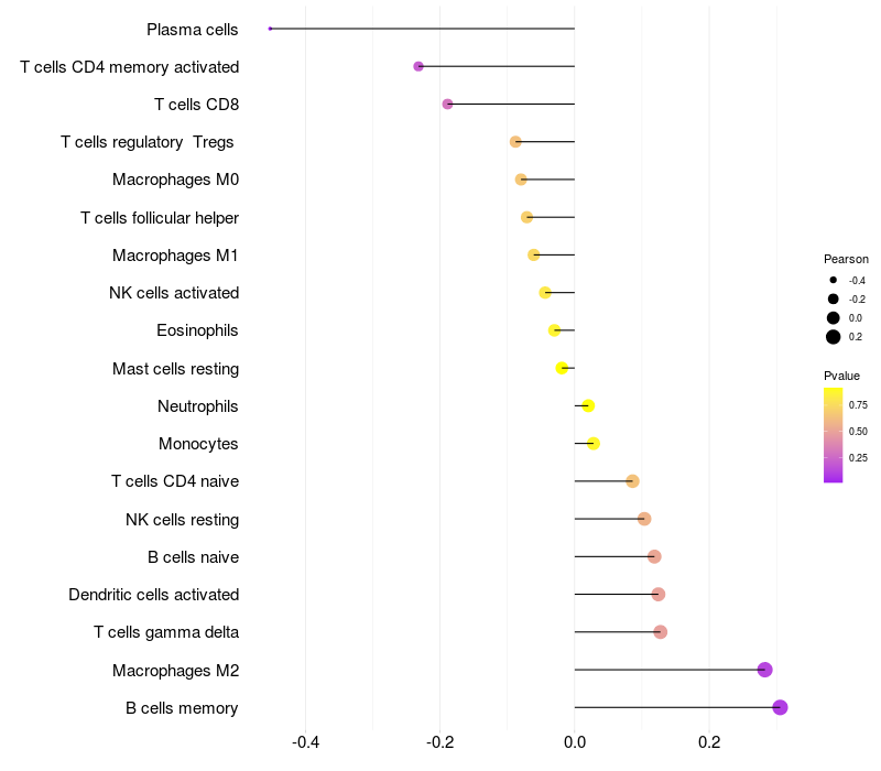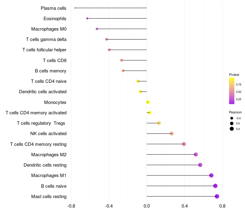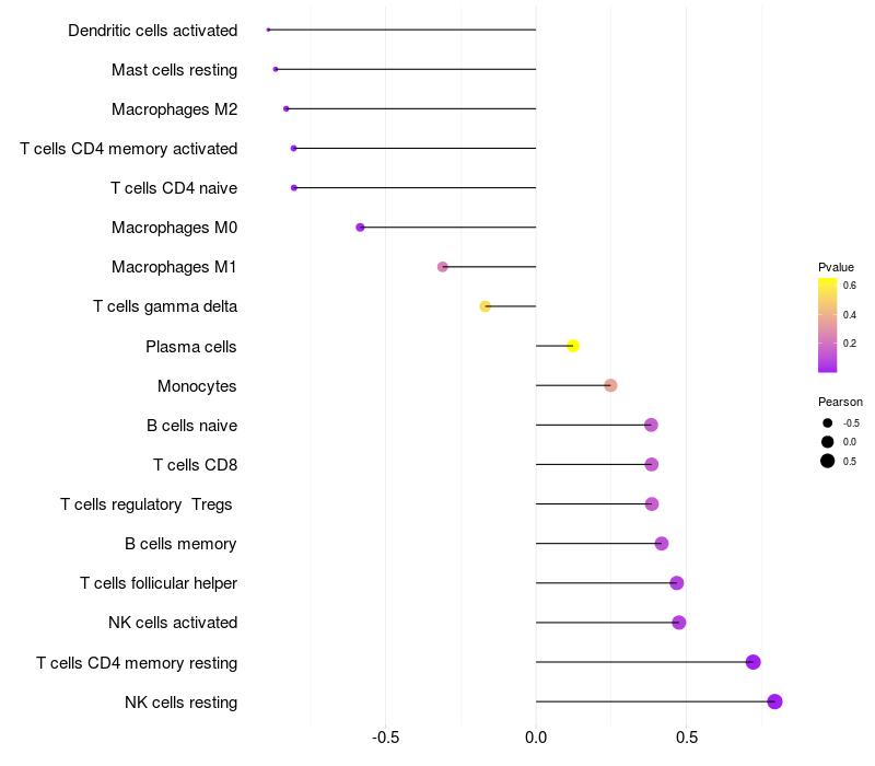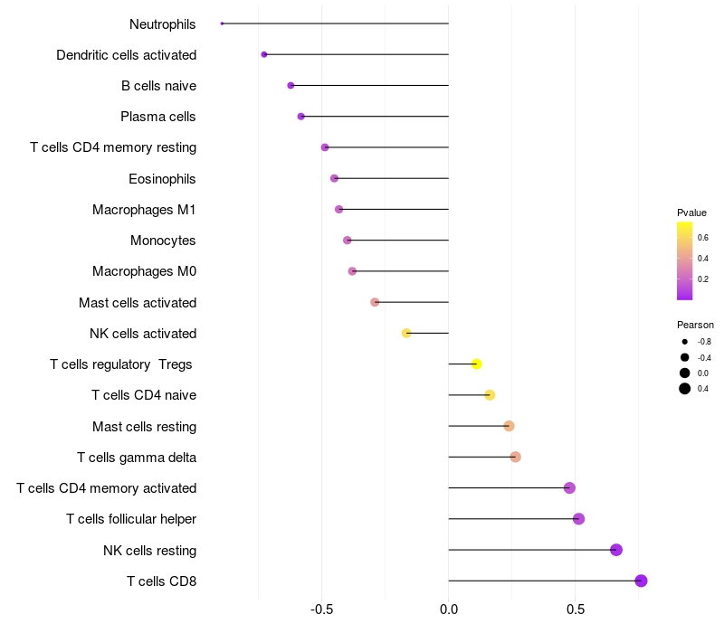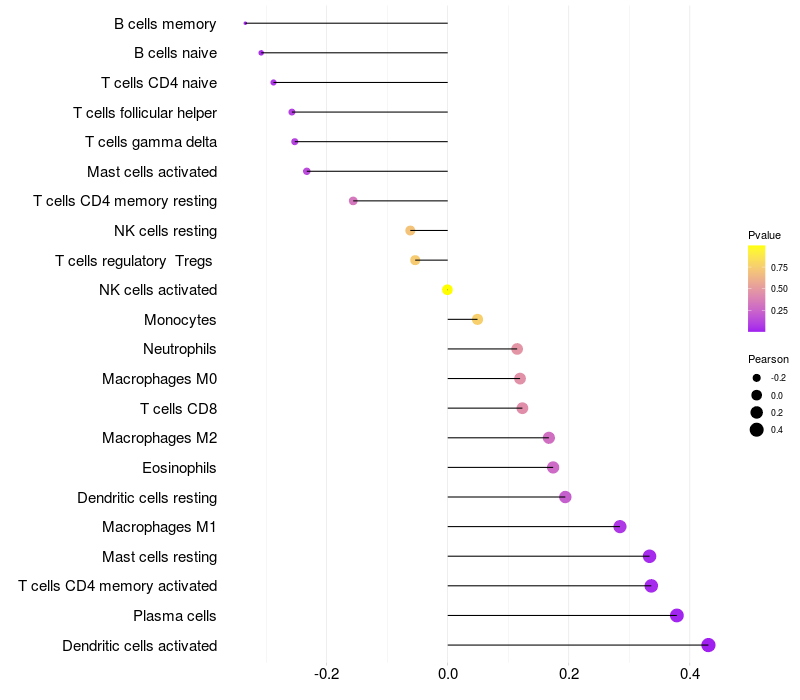 Lollipop of TTC27 expression and immune infiltrating cell level correlation result in EBV+ samples