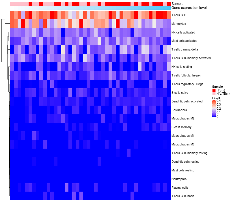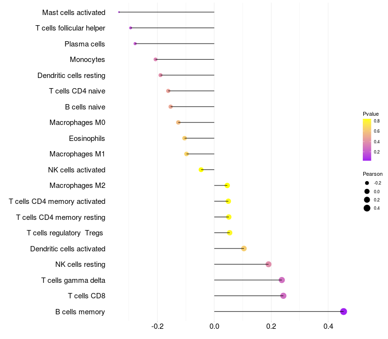 Relationship between gene expression and immune infiltrating cell level