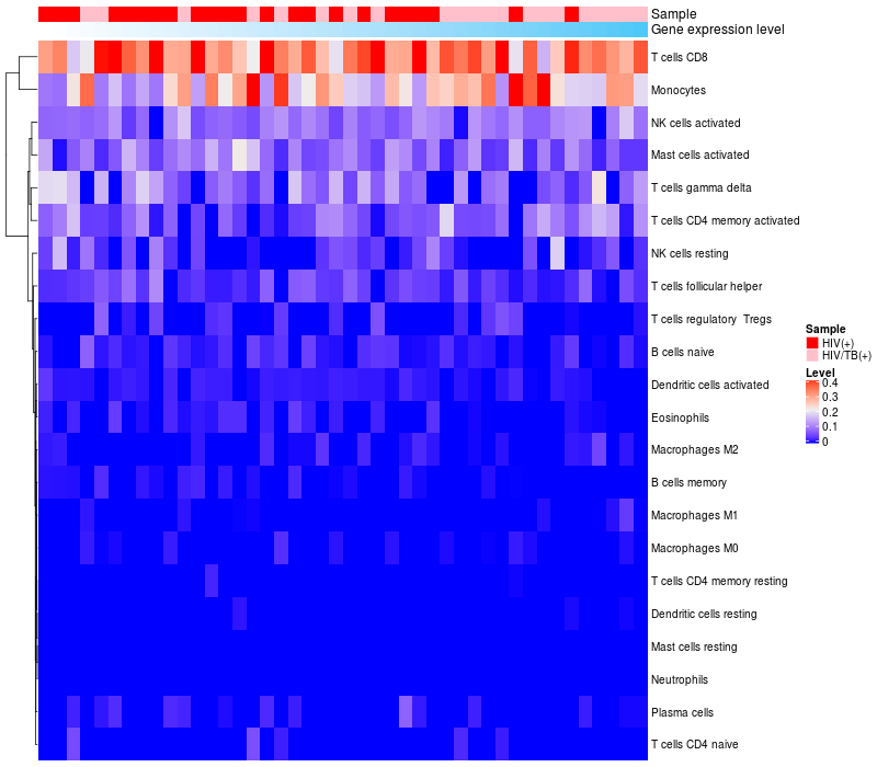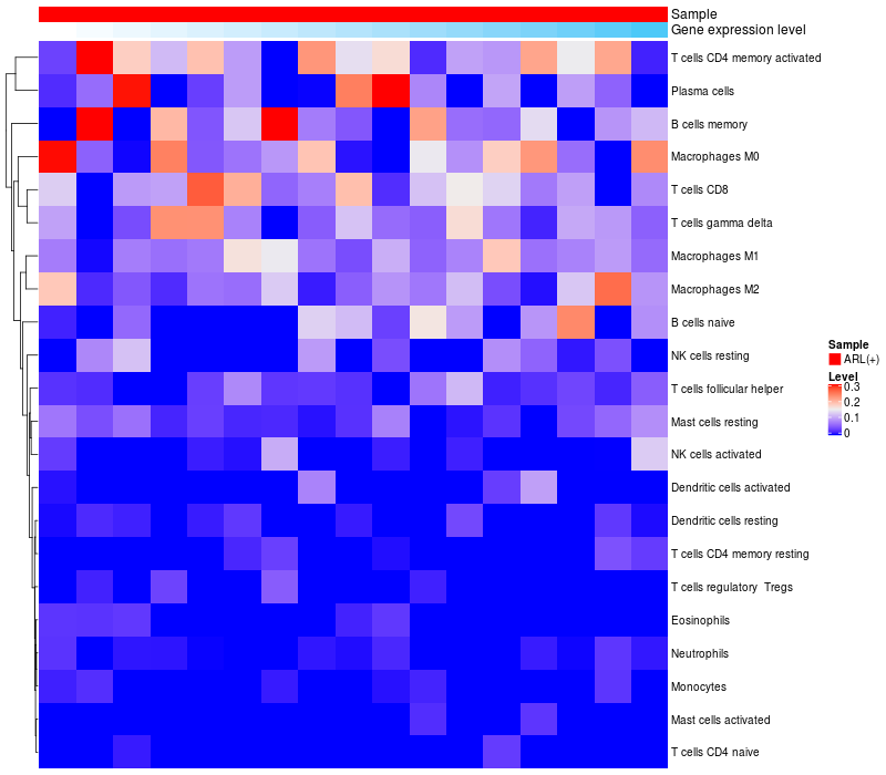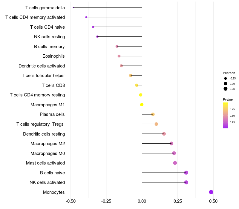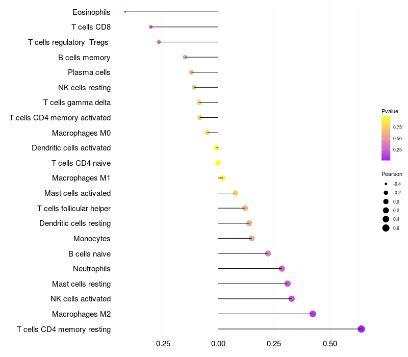 Relationship between gene expression and immune infiltrating cell level