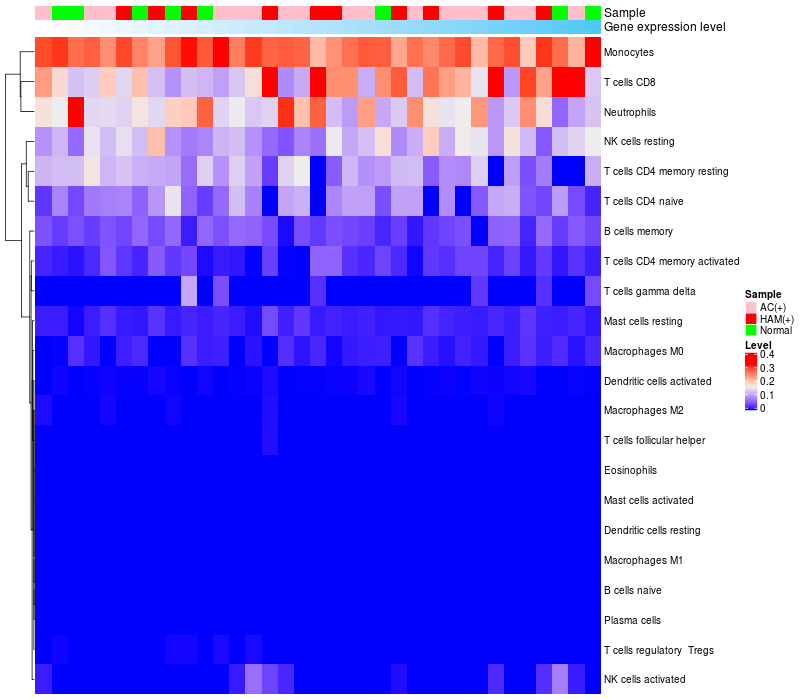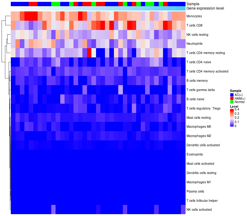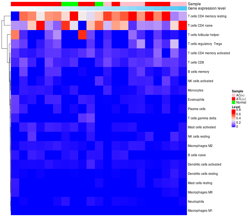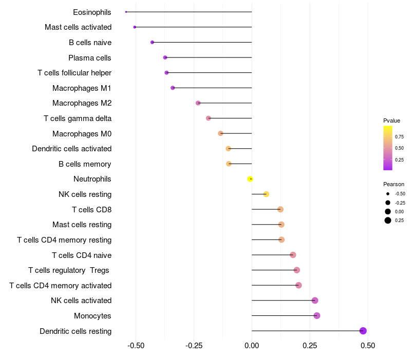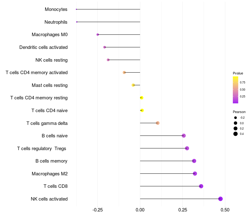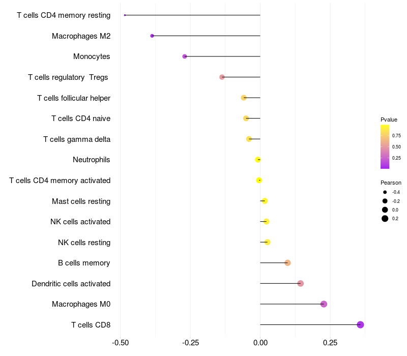 Lollipop of TTLL1 expression and immune infiltrating cell level correlation result in HTLV1+ samples