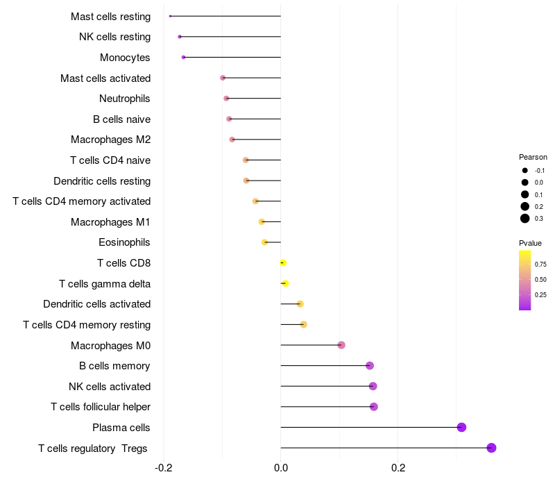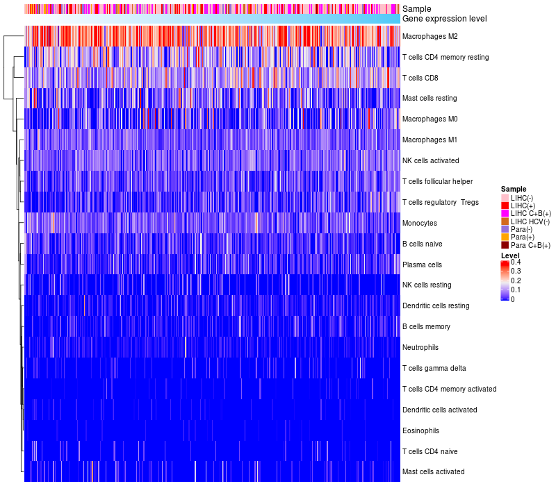 Relationship between gene expression and immune infiltrating cell level