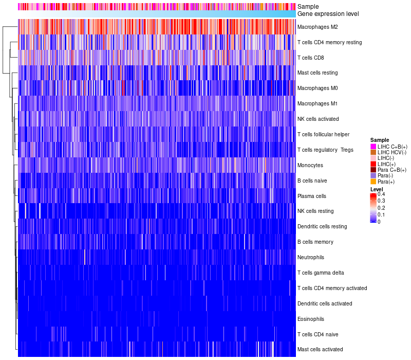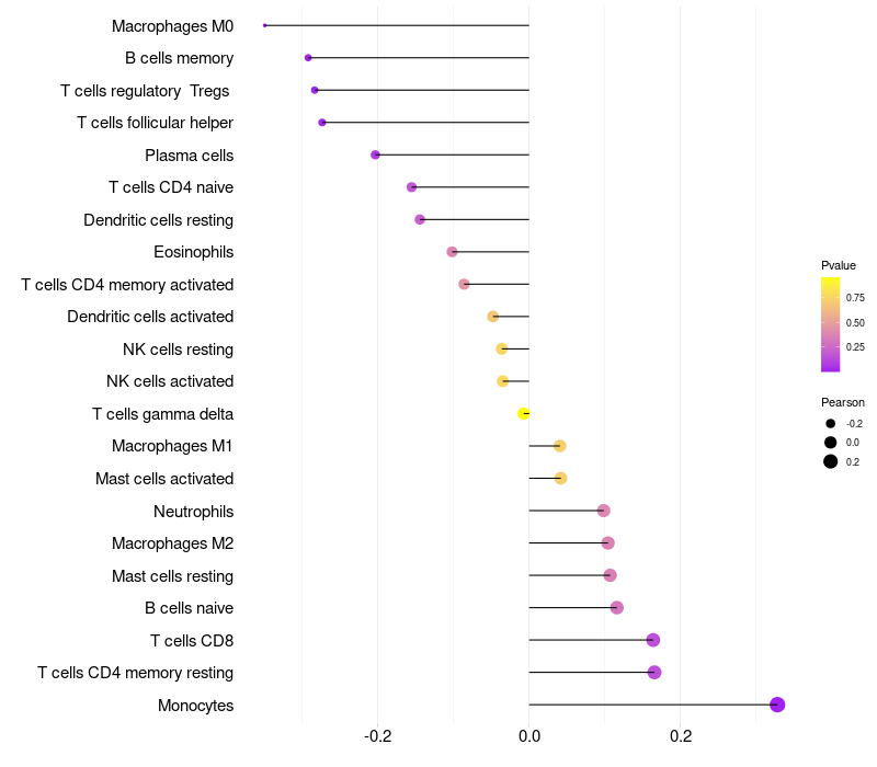 Relationship between gene expression and immune infiltrating cell level