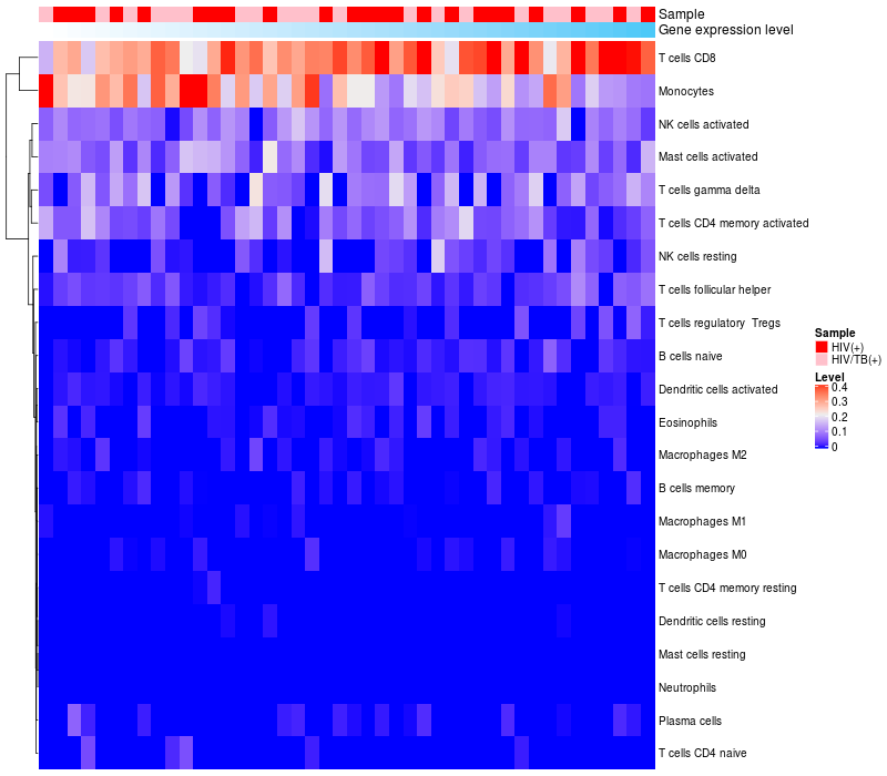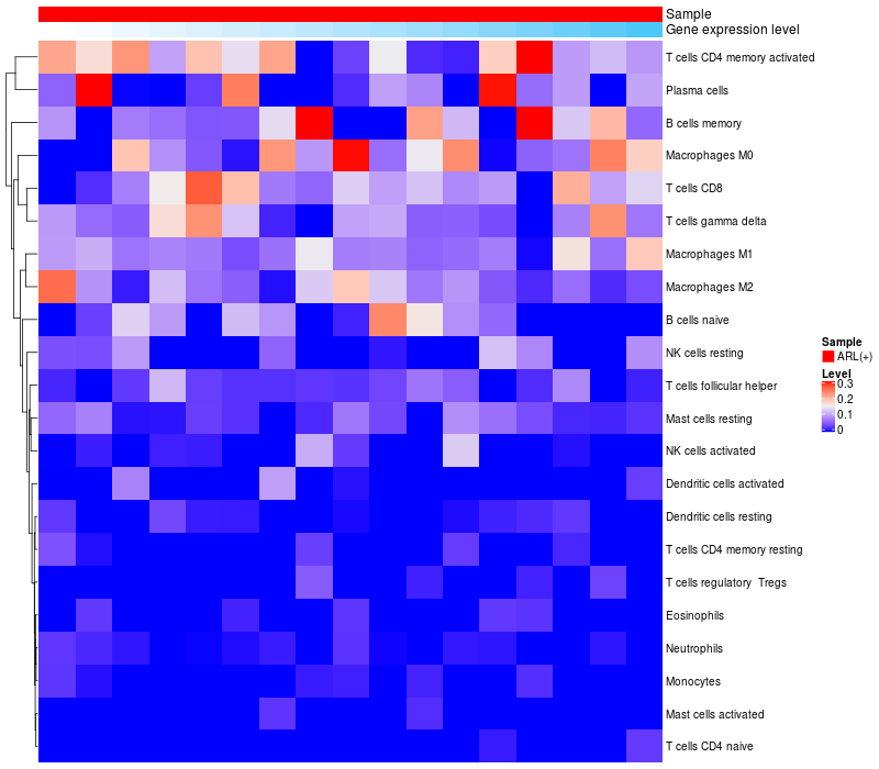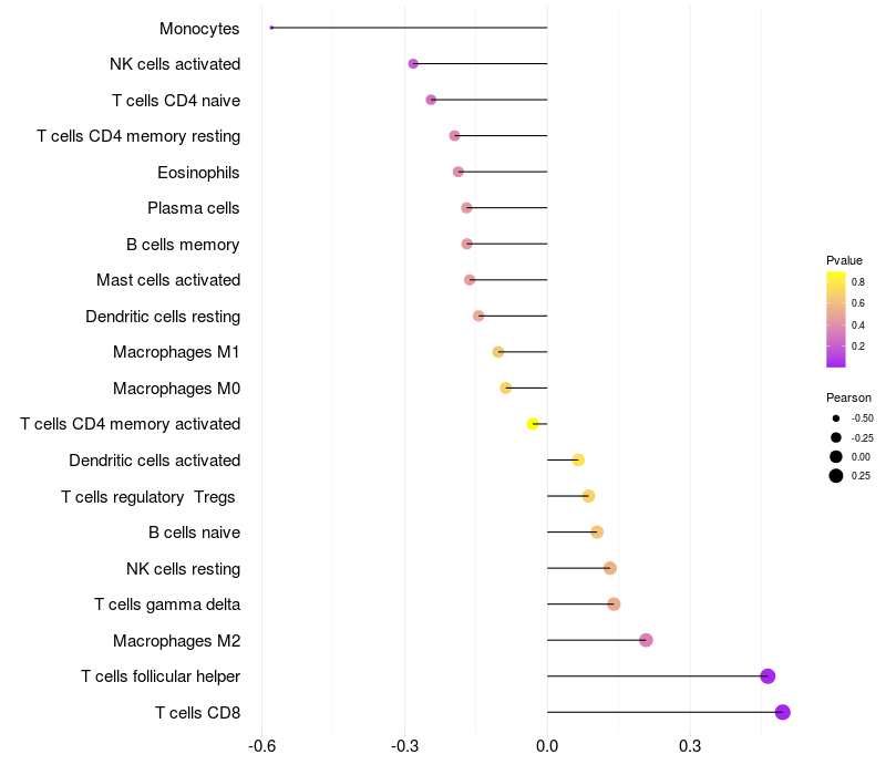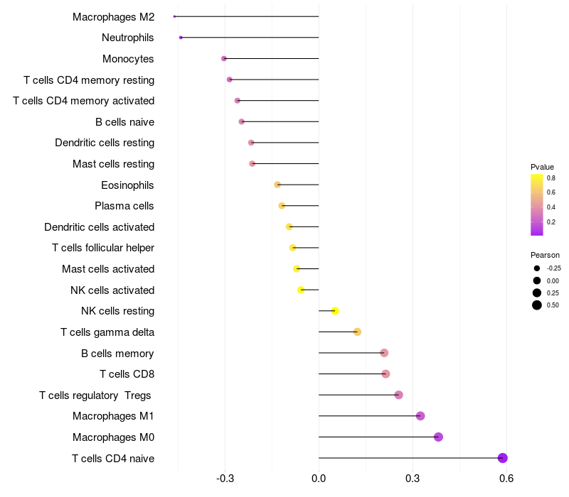 Relationship between gene expression and immune infiltrating cell level