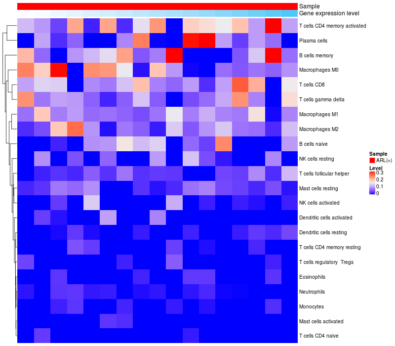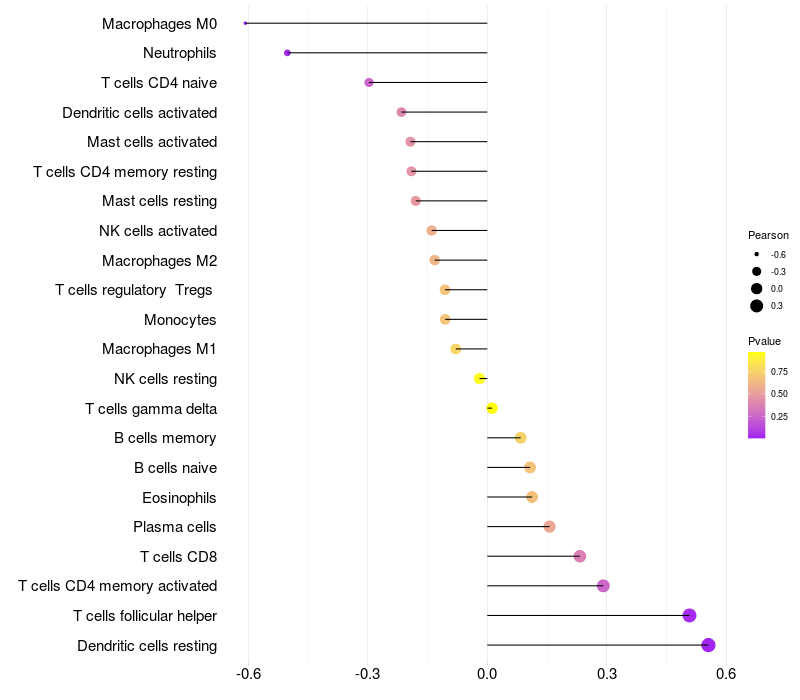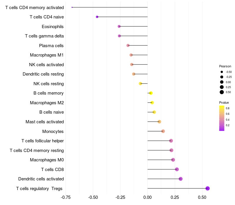 Relationship between gene expression and immune infiltrating cell level