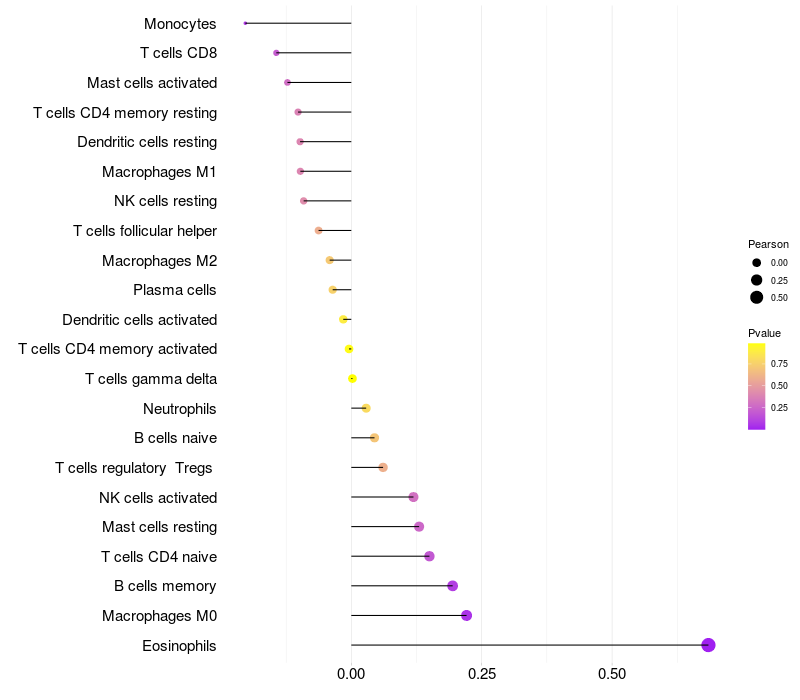 Relationship between gene expression and immune infiltrating cell level