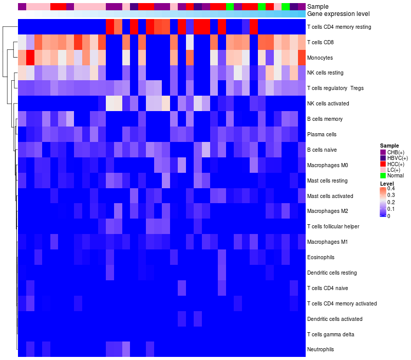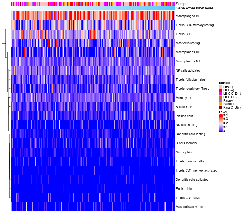 Liver hepatocellular carcinoma HCV (HBV+)(86), Liver hepatocellular carcinoma HCV (HBV-)(19), Liver hepatocellular carcinoma (HBV+)(209), Liver hepatocellular carcinoma (HBV+)(60), Paracancerous HCV (HBV+)(4), Paracancerous (HBV-)(28), Paracancerous (HBV+)(18) |