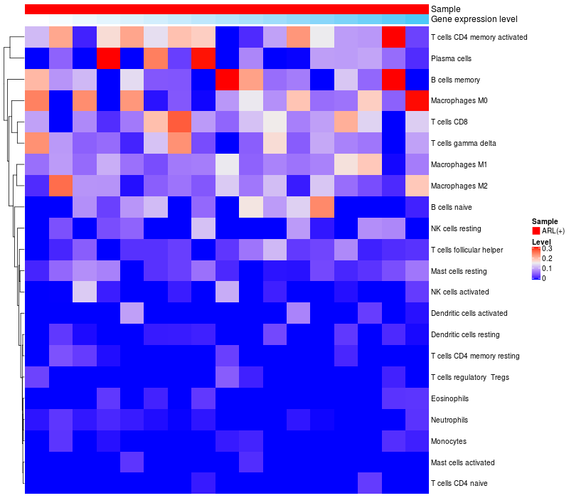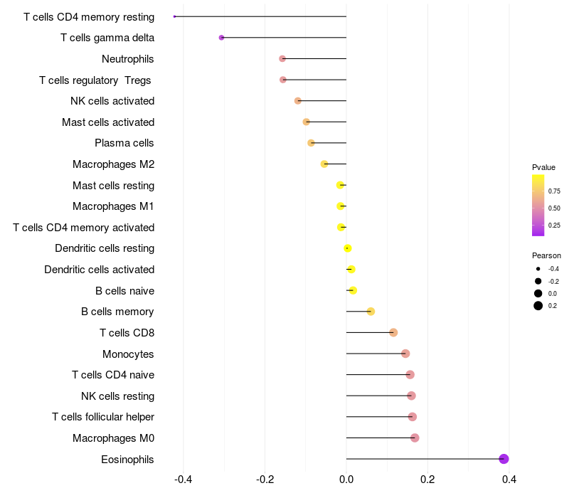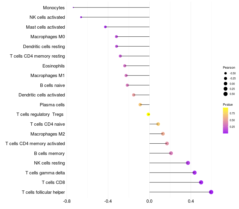 Relationship between gene expression and immune infiltrating cell level
