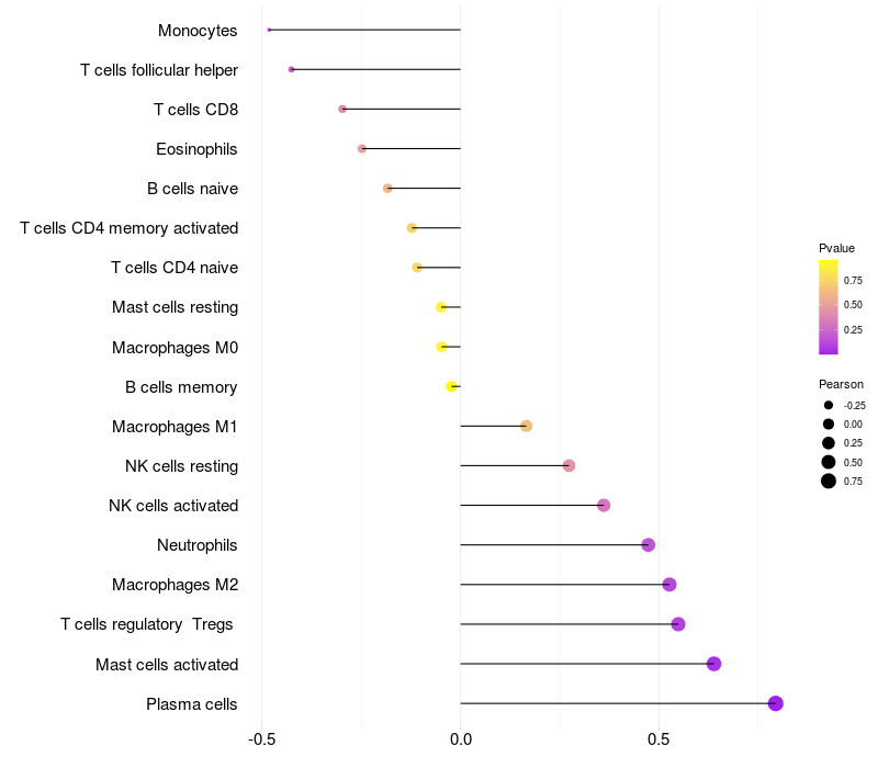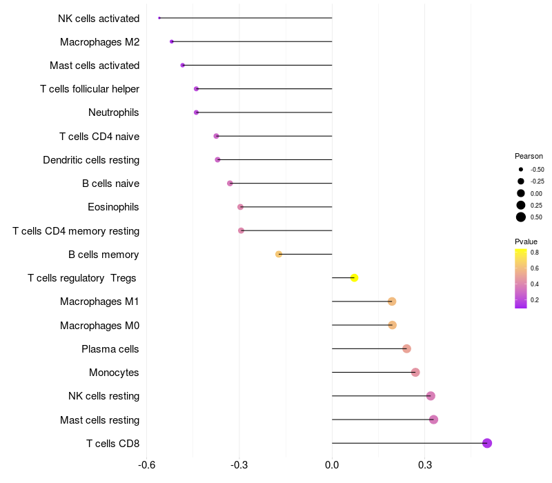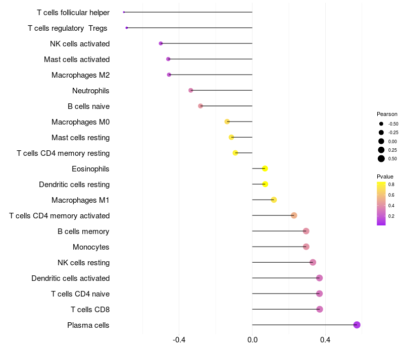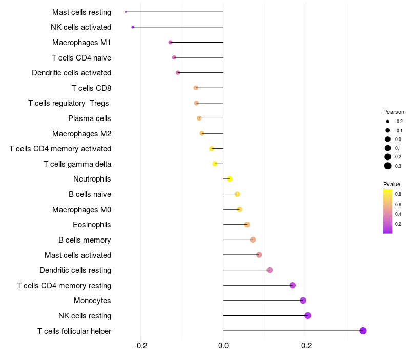 Lollipop of TXLNB expression and immune infiltrating cell level correlation result in HBV+ Liver cirrhosis samples