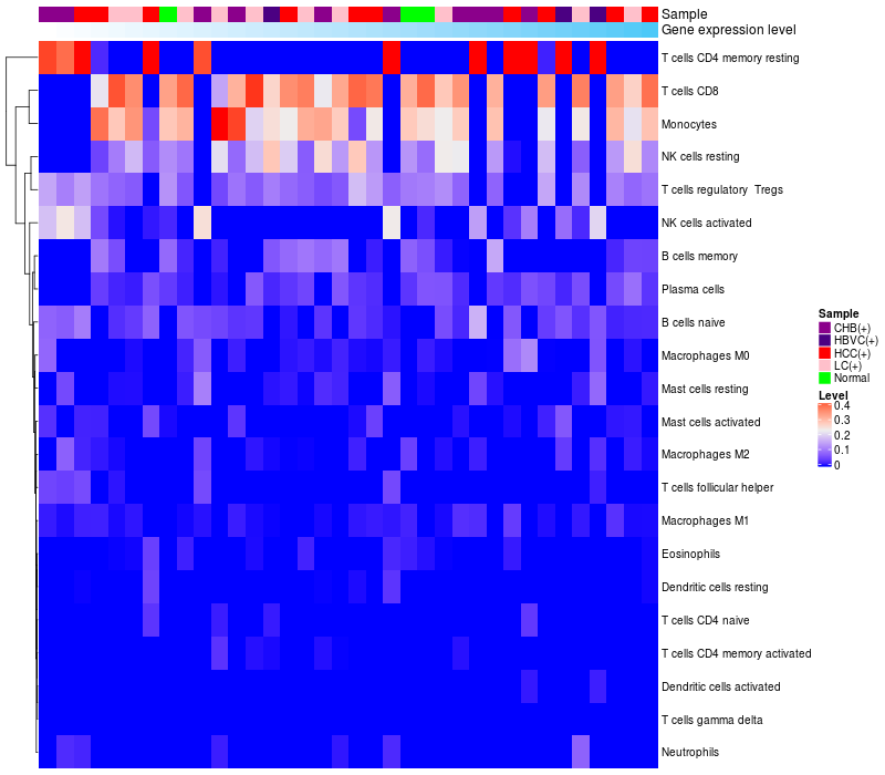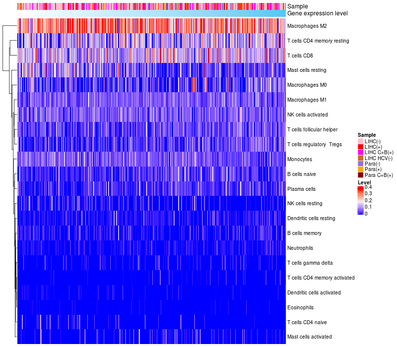 Liver hepatocellular carcinoma HCV (HBV+)(86), Liver hepatocellular carcinoma HCV (HBV-)(19), Liver hepatocellular carcinoma (HBV+)(209), Liver hepatocellular carcinoma (HBV+)(60), Paracancerous HCV (HBV+)(4), Paracancerous (HBV-)(28), Paracancerous (HBV+)(18) |