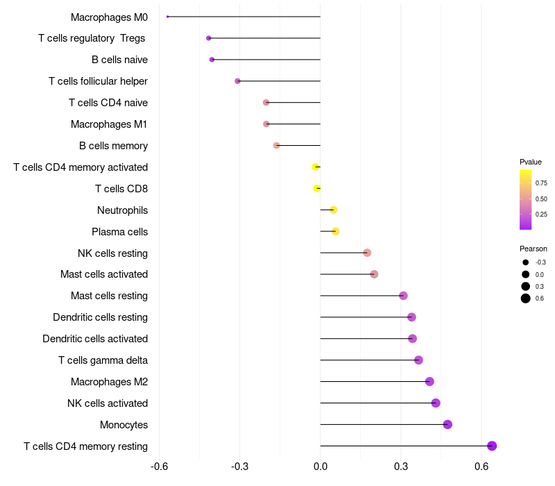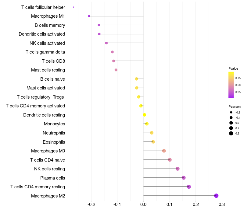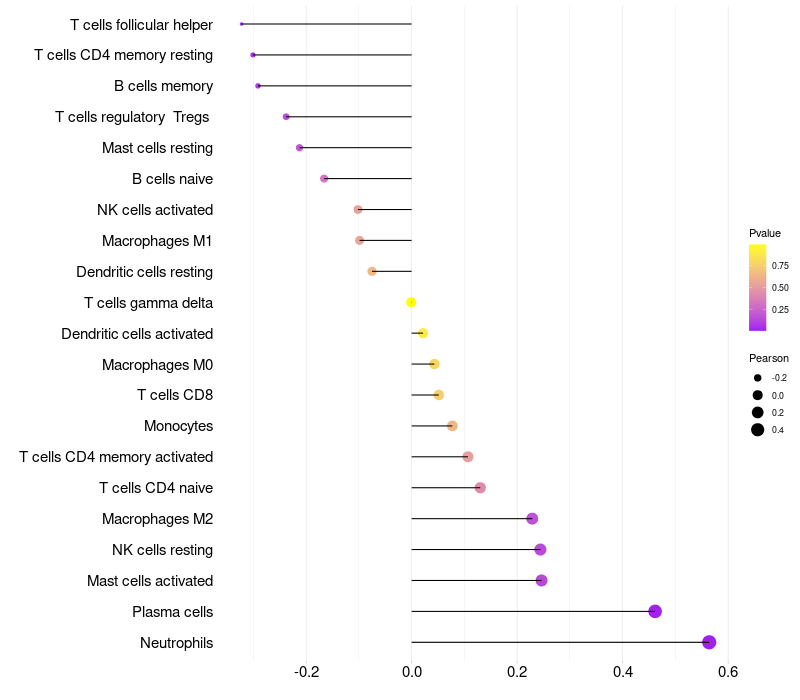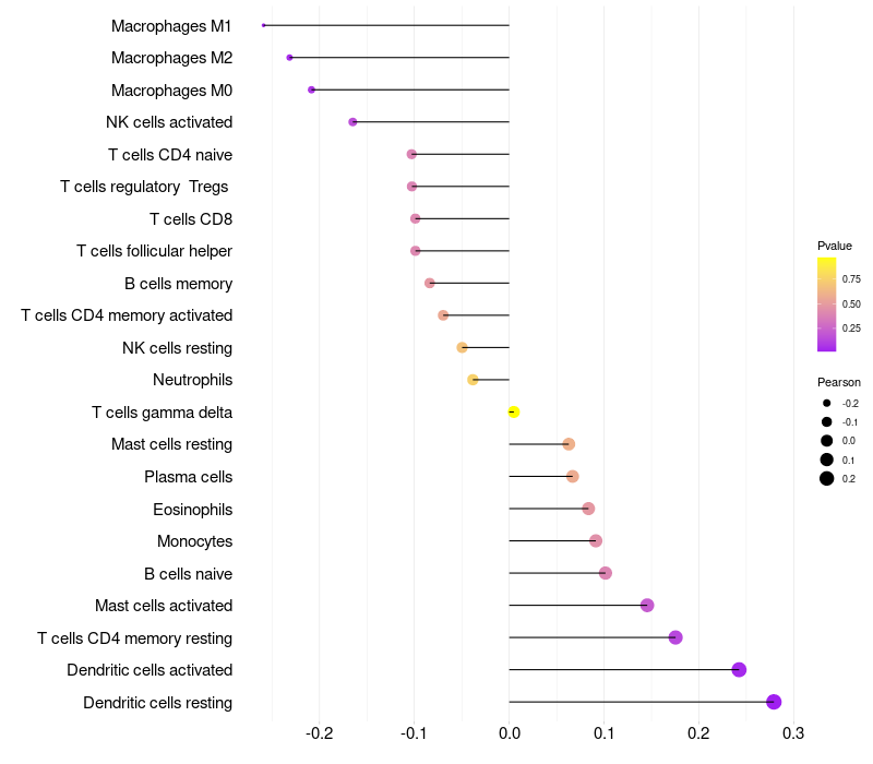 HeatMap of cell type fractions in all samples Lollipop of TXN expression and immune infiltrating cell level correlation result in HPV+ samples