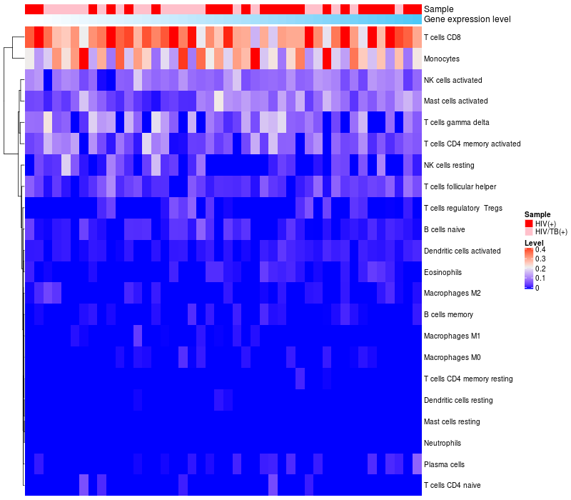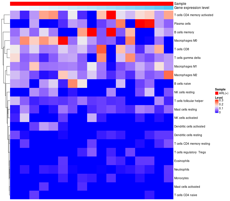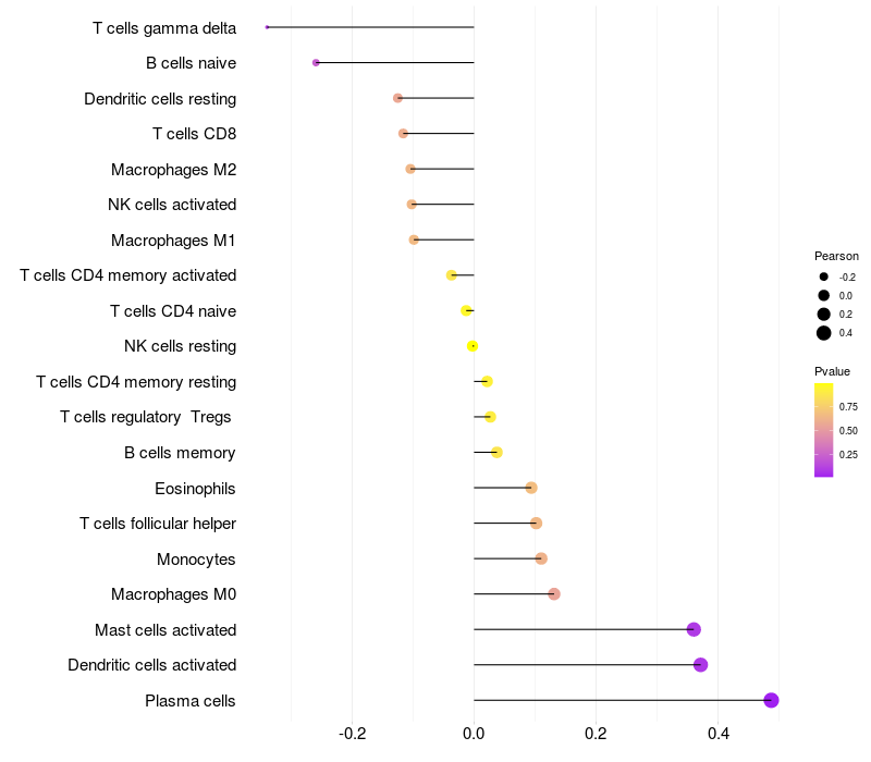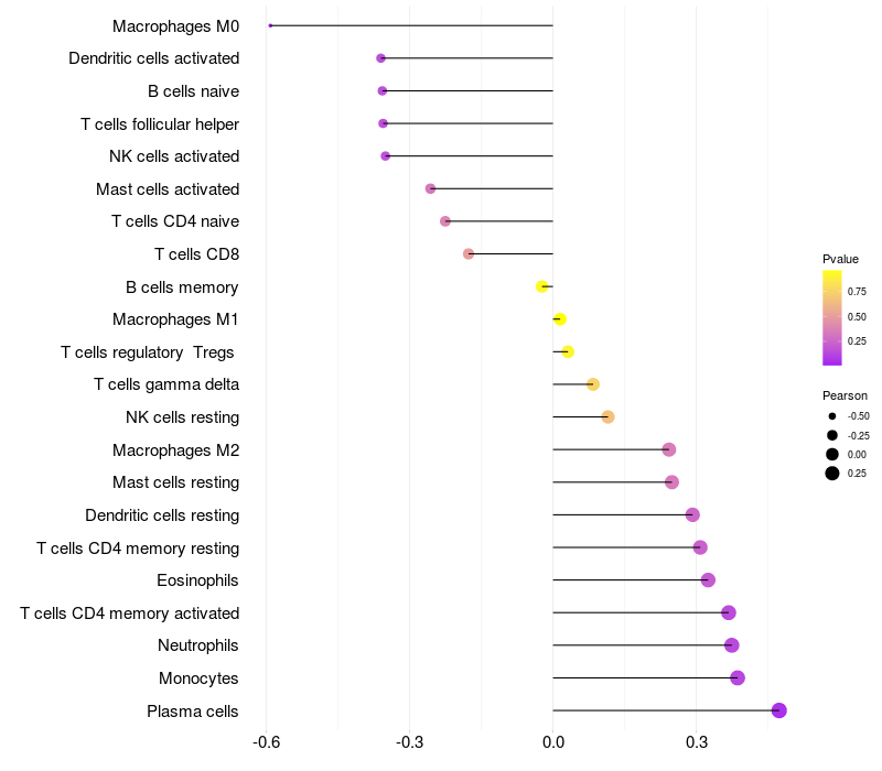 Relationship between gene expression and immune infiltrating cell level