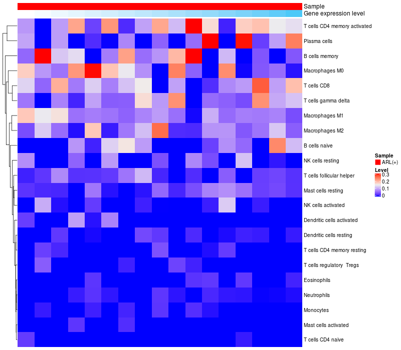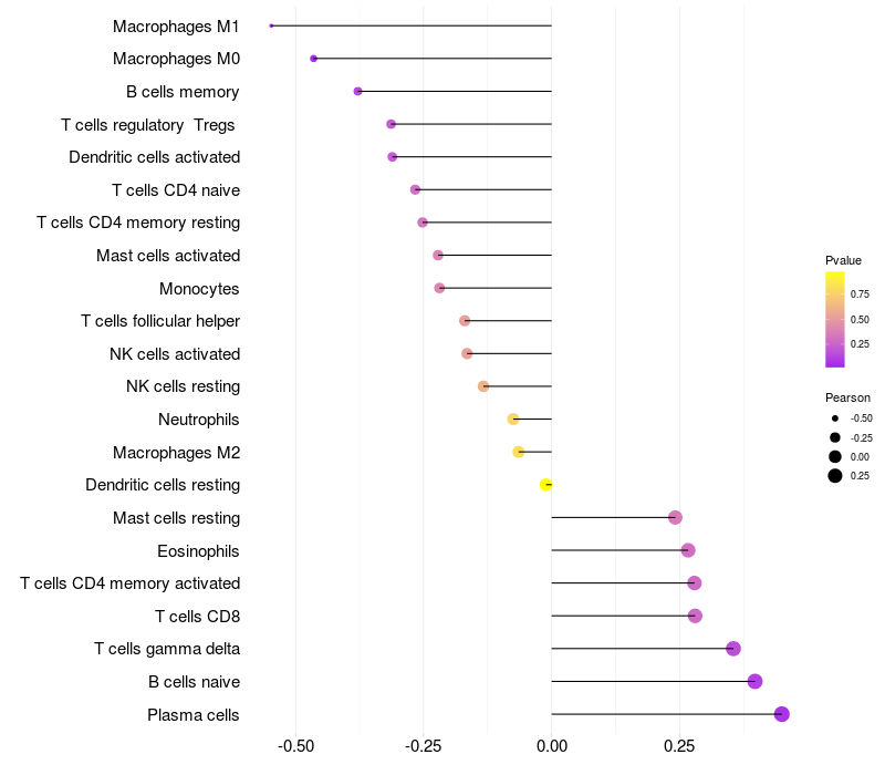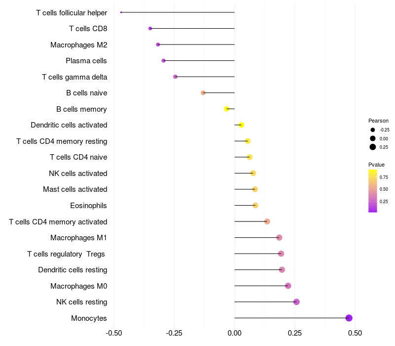 Relationship between gene expression and immune infiltrating cell level