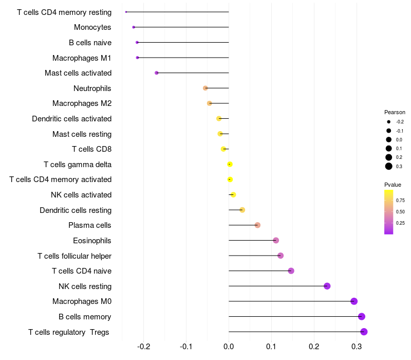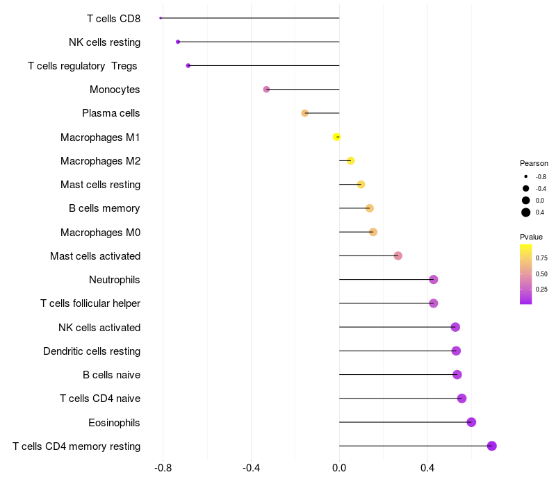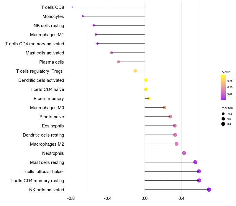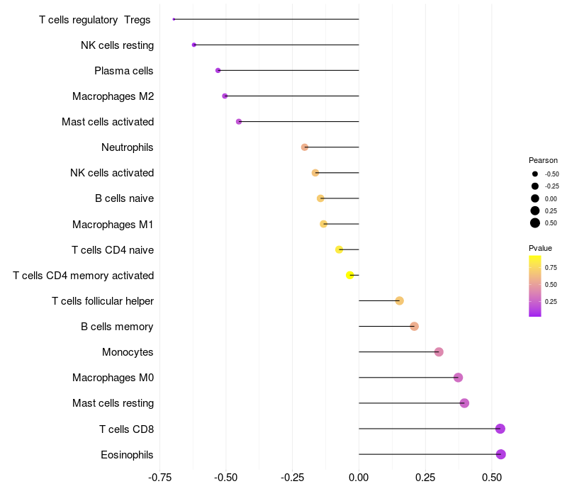 Lollipop of TXNL4A expression and immune infiltrating cell level correlation result in HBV+ Chronic HBV (CHB) infection samples