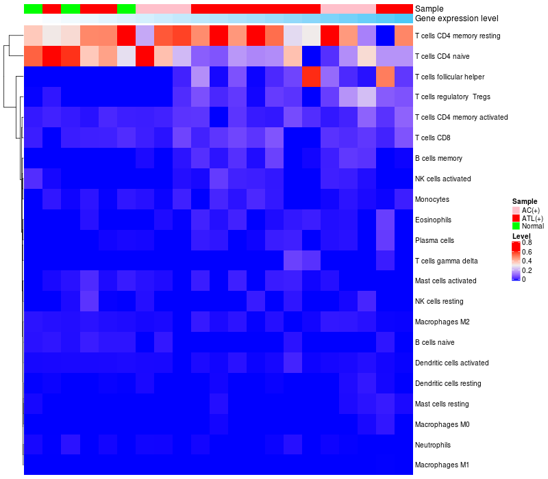 Normal (3), Asymptomatic carriers (HTLV1+)(6), Adult T-cell Leukemia-lymphoma (HTLV1+)(12) |