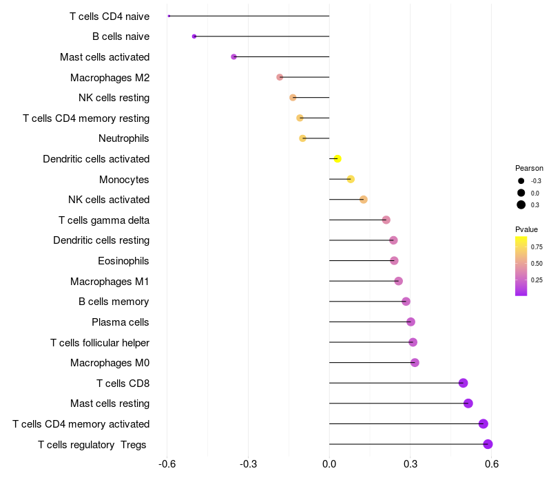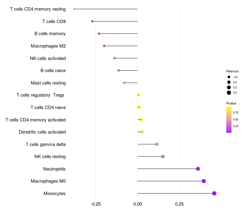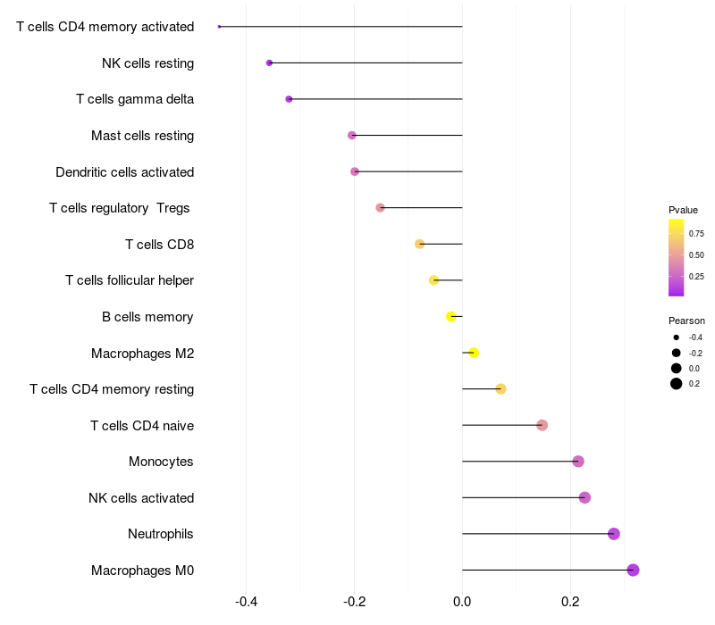 Lollipop of TXNRD1 expression and immune infiltrating cell level correlation result in HTLV1+ samples