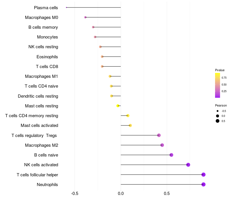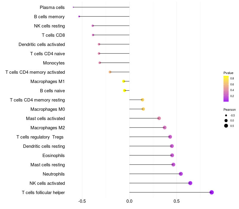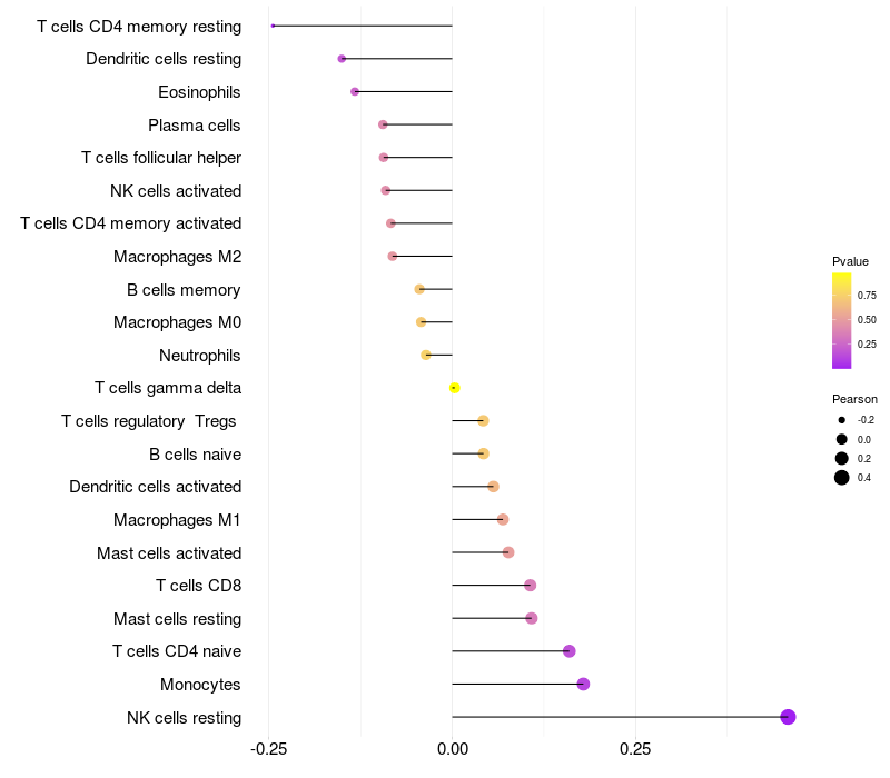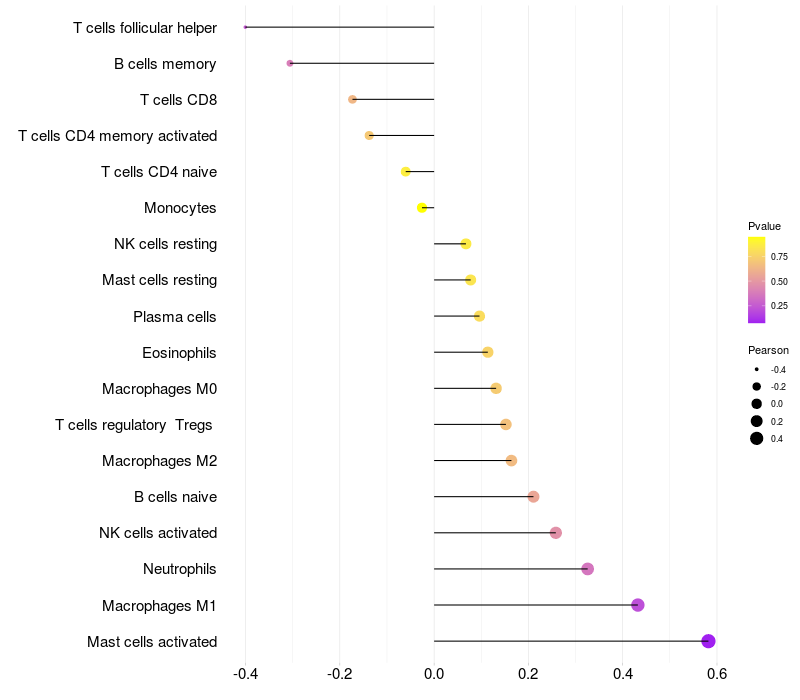 Lollipop of TXNRD2 expression and immune infiltrating cell level correlation result in HBV+ Chronic HBV (CHB) infection samples