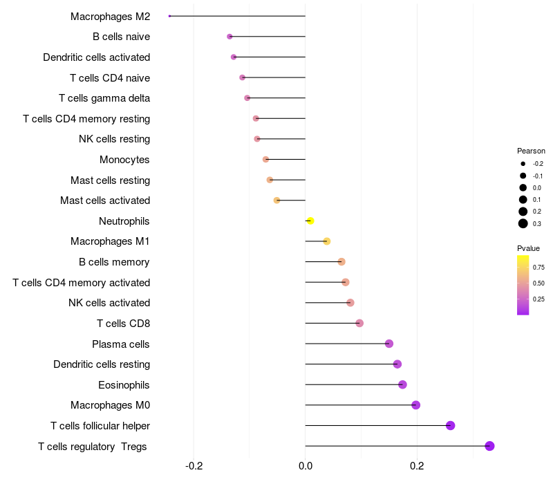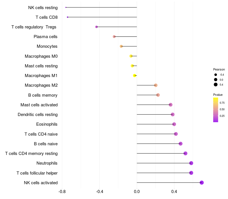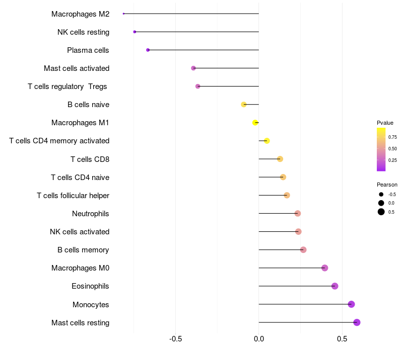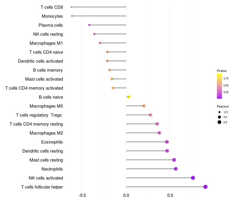 Lollipop of U2AF1 expression and immune infiltrating cell level correlation result in HBV+ Liver cirrhosis samples
