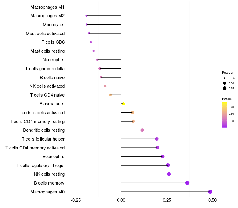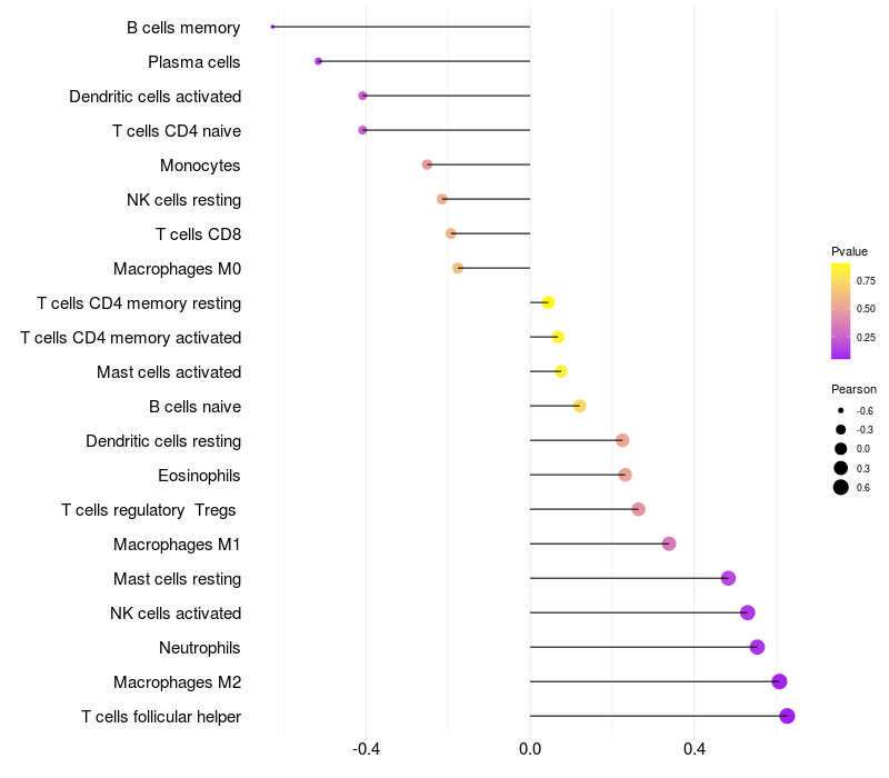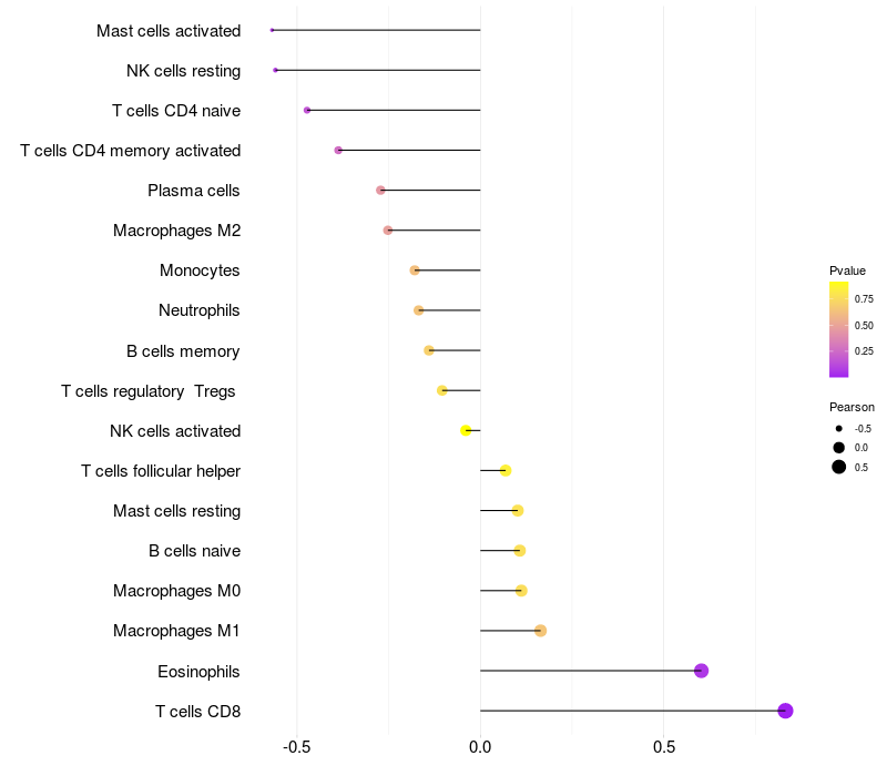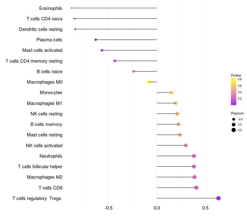 Lollipop of U2AF2 expression and immune infiltrating cell level correlation result in HBV+ samples