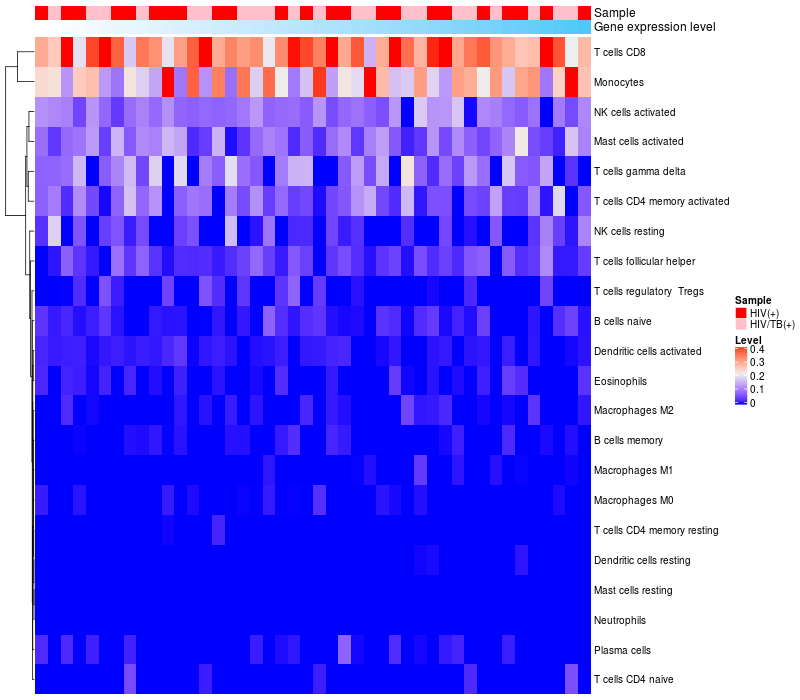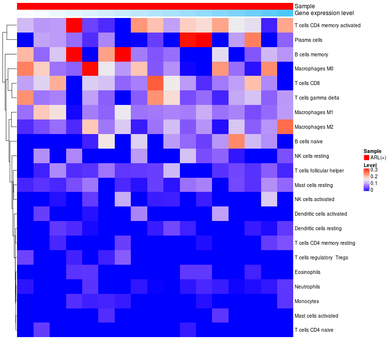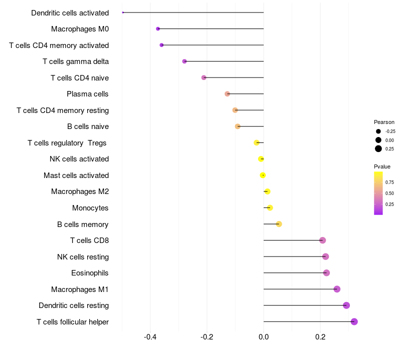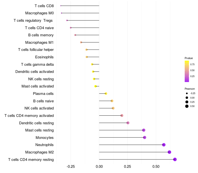 Relationship between gene expression and immune infiltrating cell level
