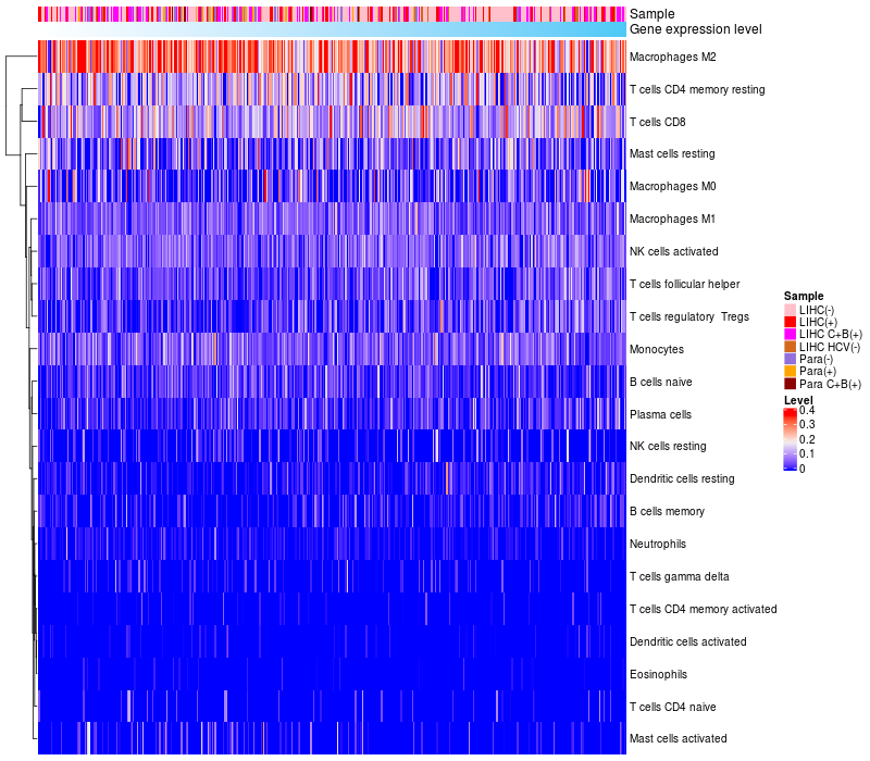 Relationship between gene expression and immune infiltrating cell level