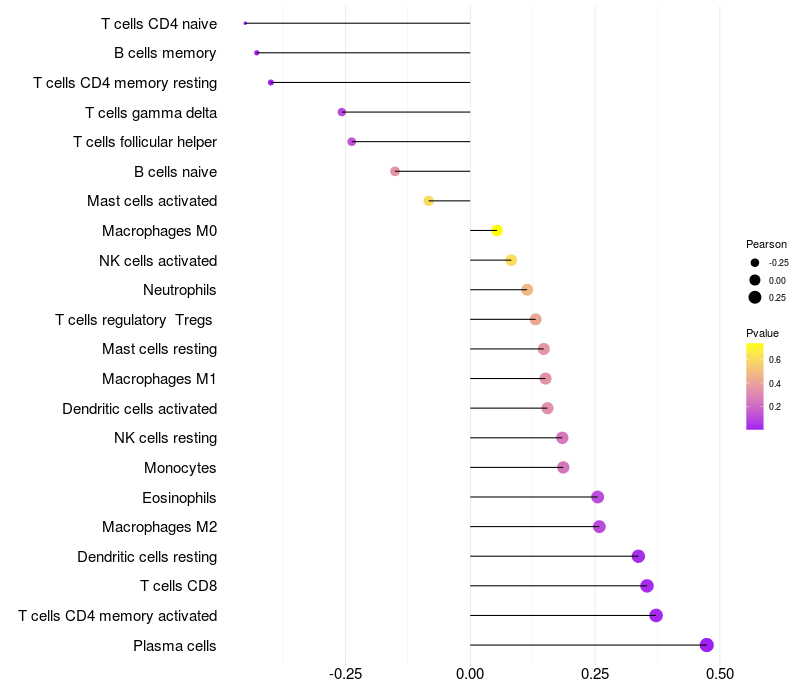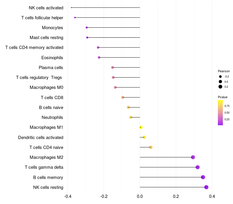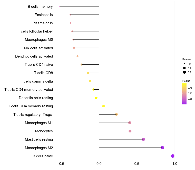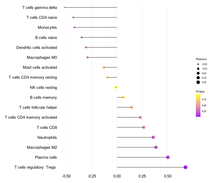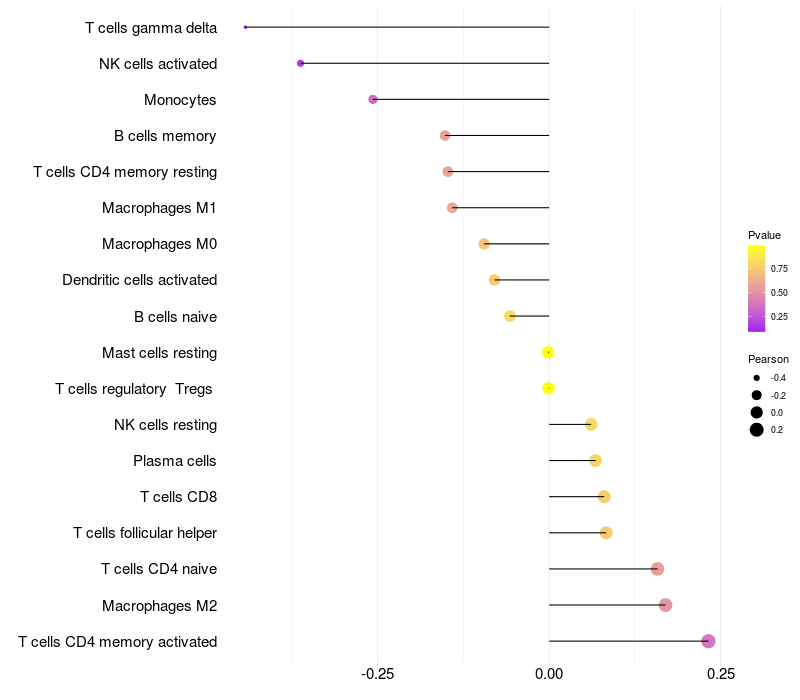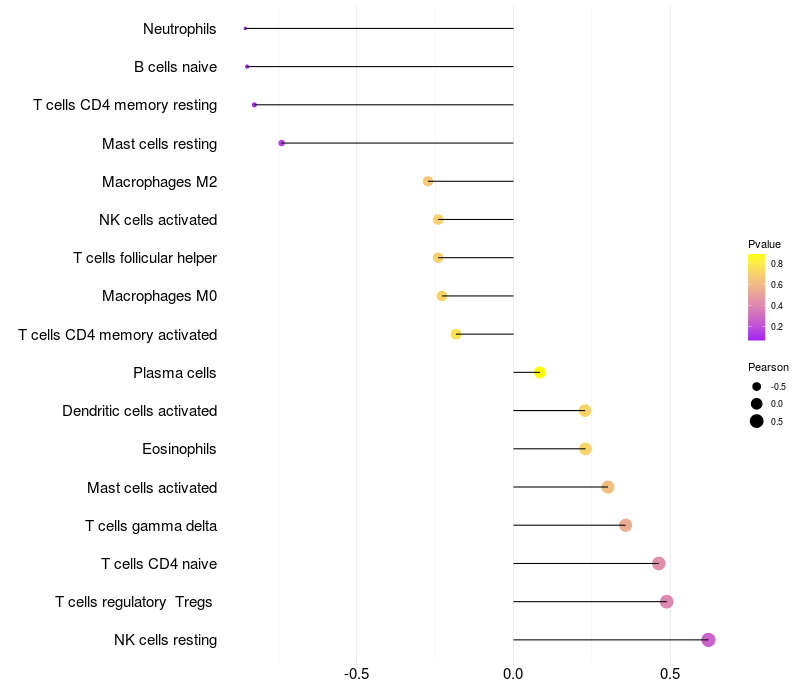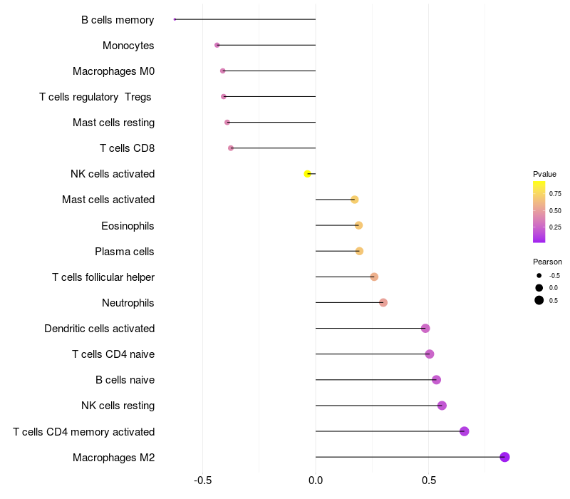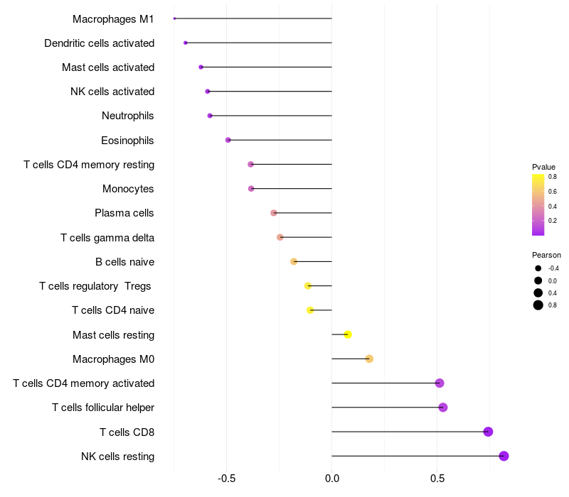 Lollipop of UBAP2L expression and immune infiltrating cell level correlation result in EBV+ samples