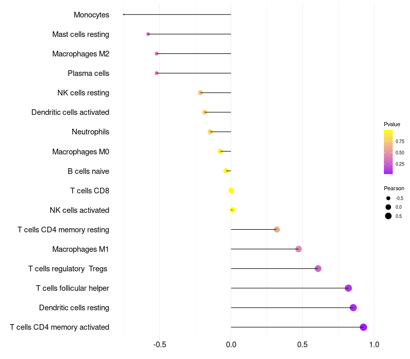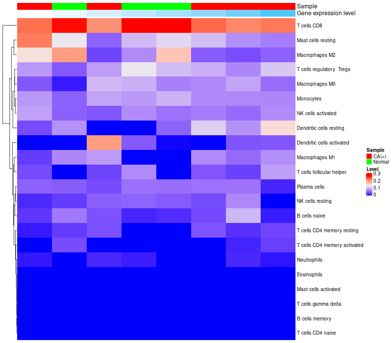 Relationship between gene expression and immune infiltrating cell level