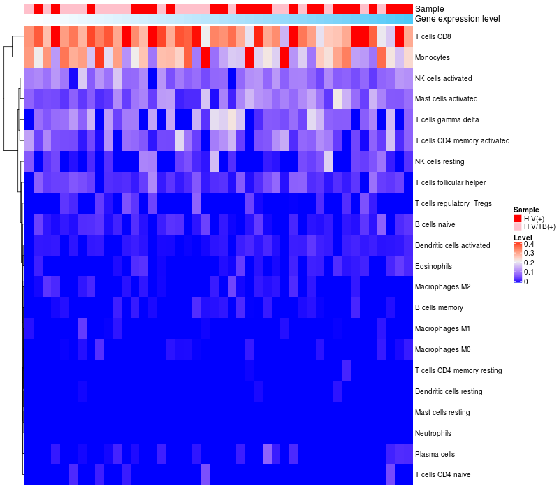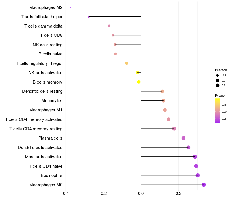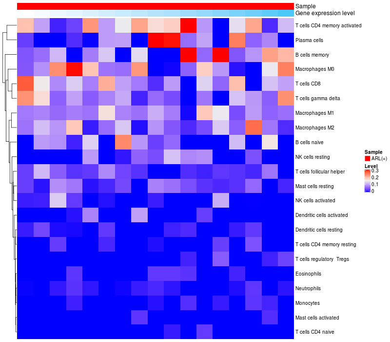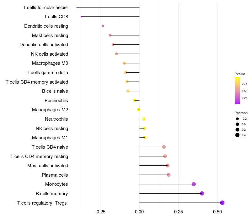 Relationship between gene expression and immune infiltrating cell level