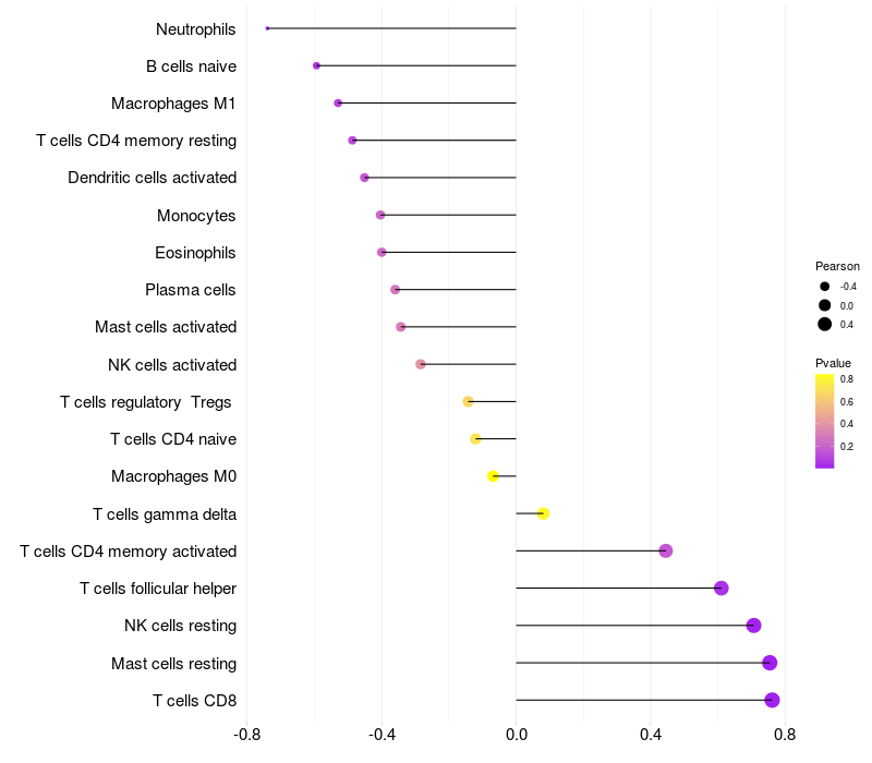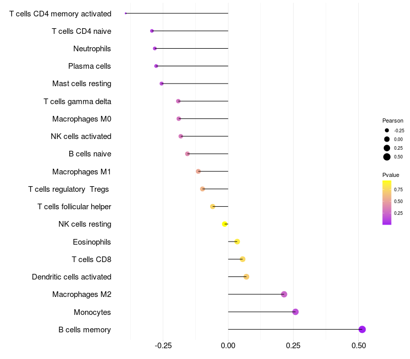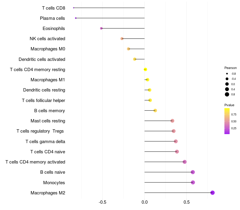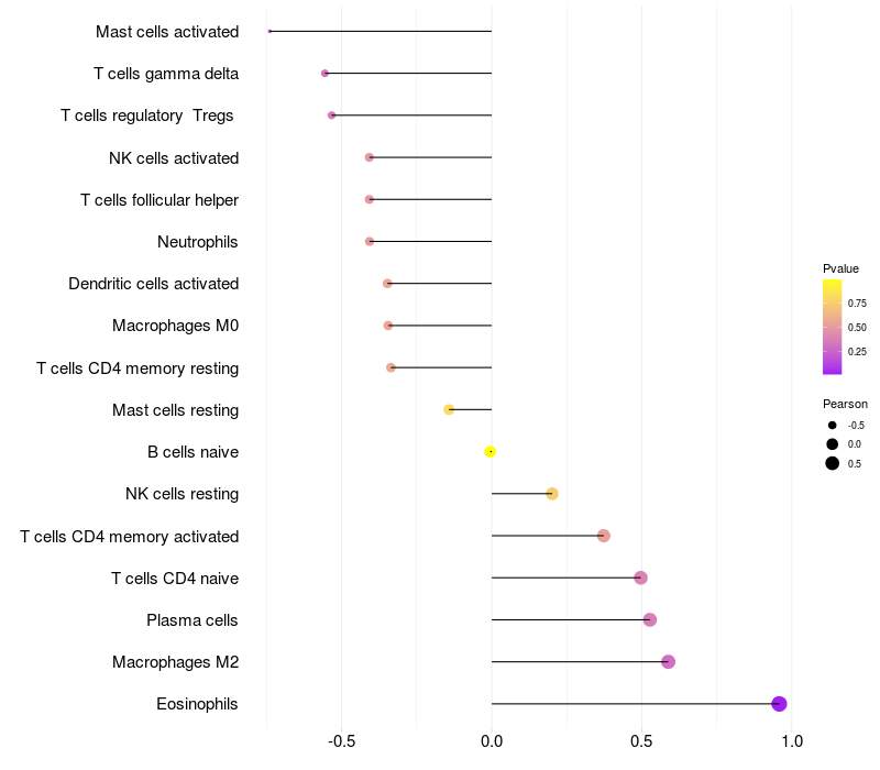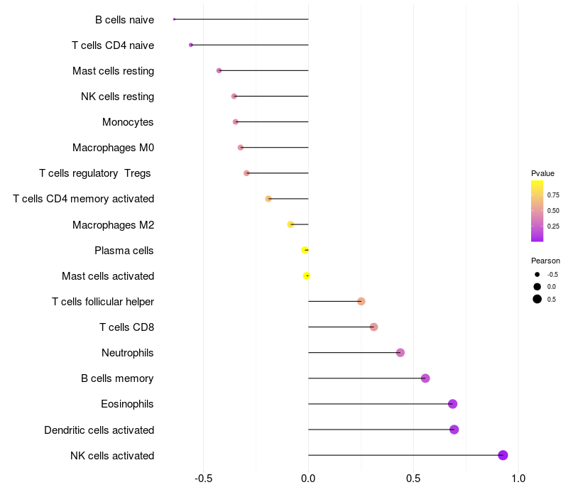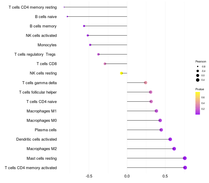 Lollipop of UCHL5 expression and immune infiltrating cell level correlation result in EBV+ samples