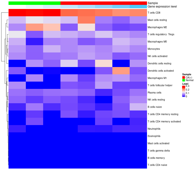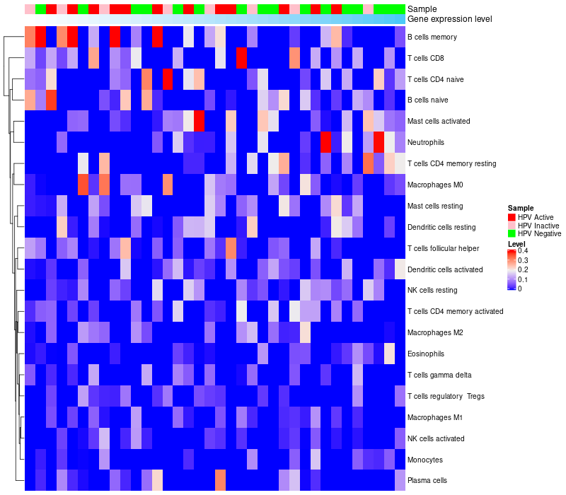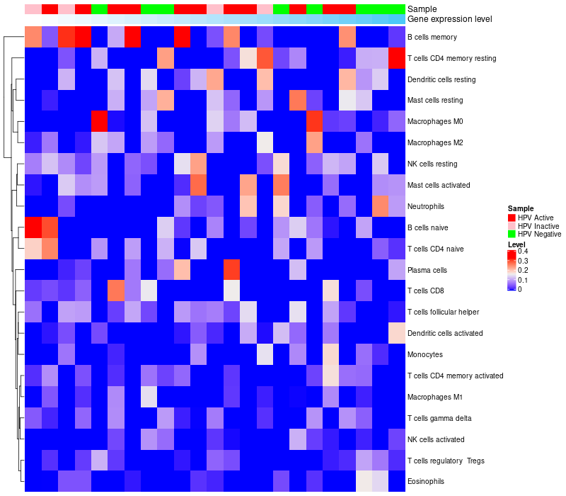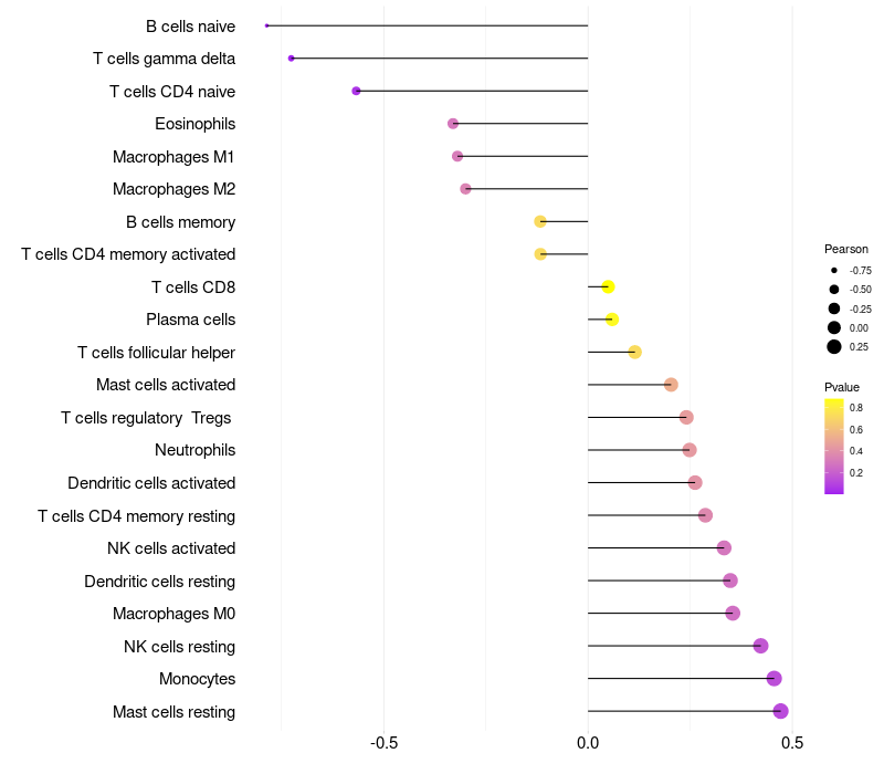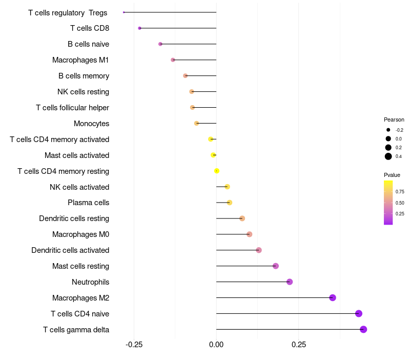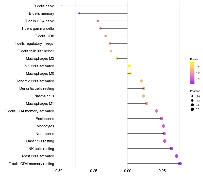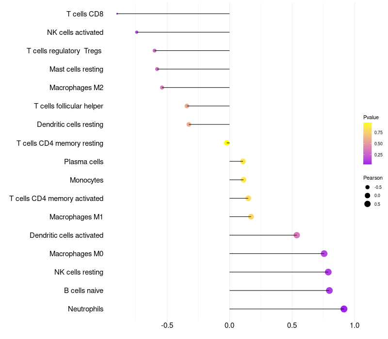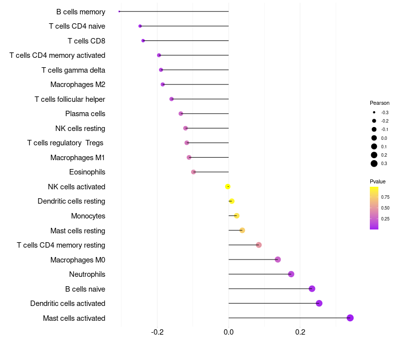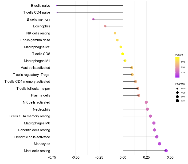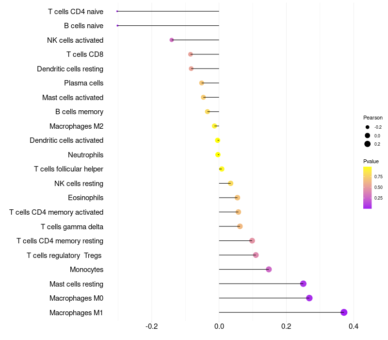 Lollipop of UCK2 expression and immune infiltrating cell level correlation result in HPV+ samples