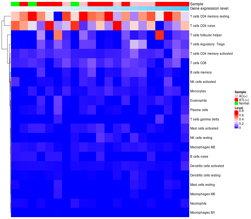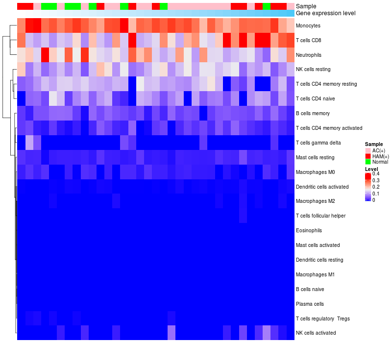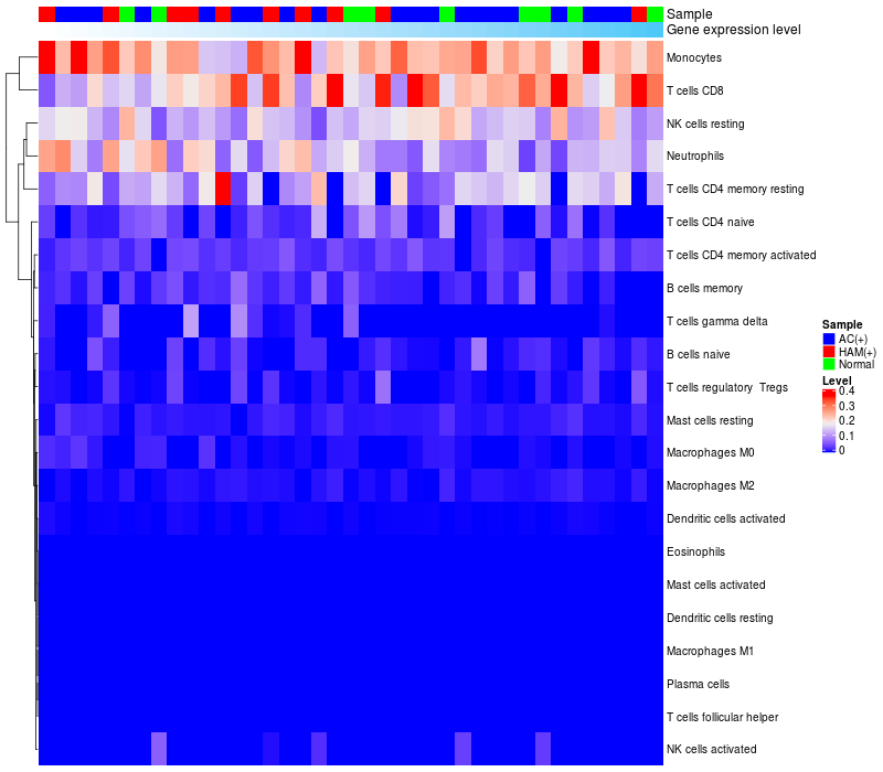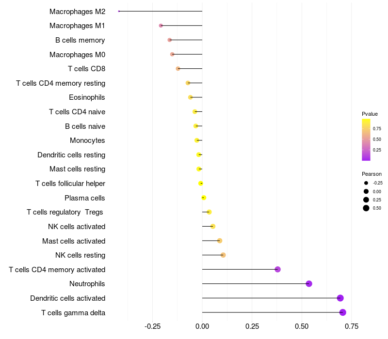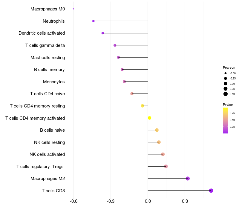 Lollipop of UFM1 expression and immune infiltrating cell level correlation result in HTLV1+ samples