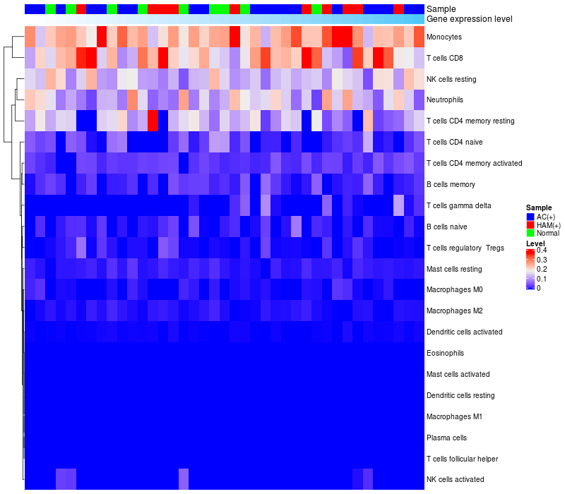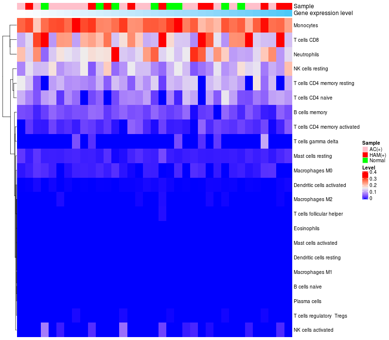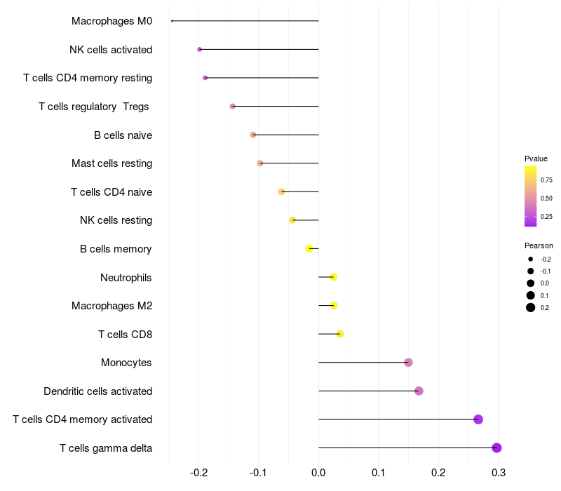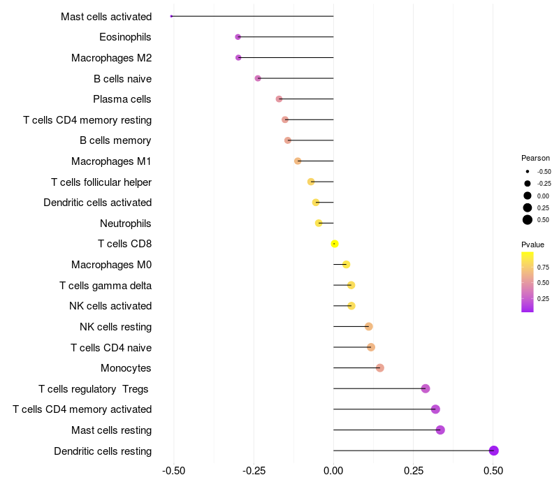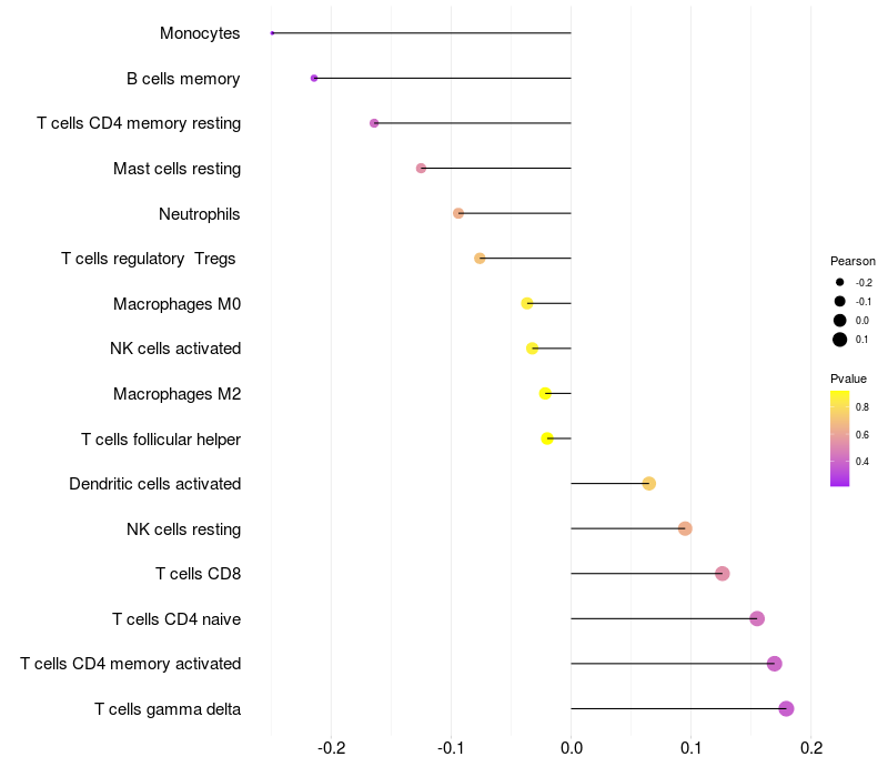 Lollipop of UGT1A8 expression and immune infiltrating cell level correlation result in HTLV1+ samples