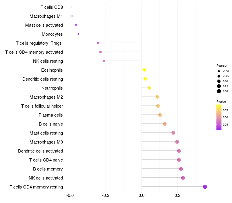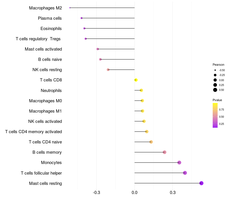 Lollipop of ULK2 expression and immune infiltrating cell level correlation result in HBV+ Chronic HBV (CHB) infection samples