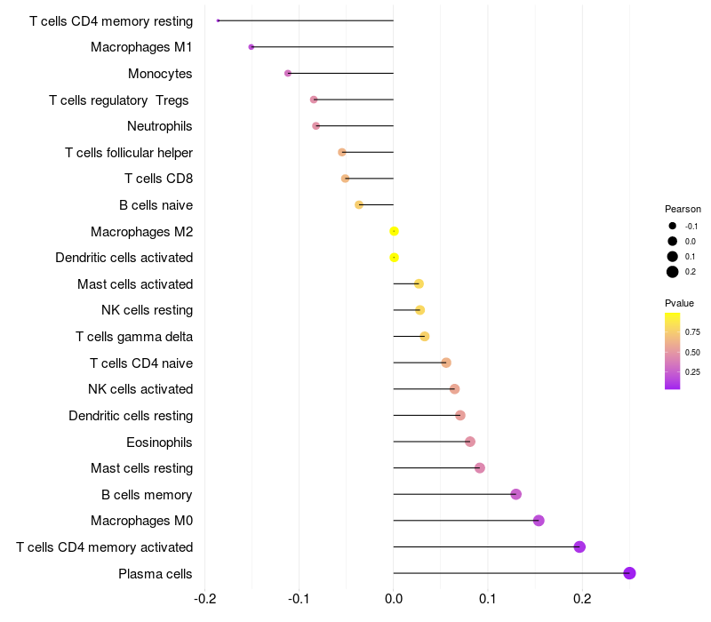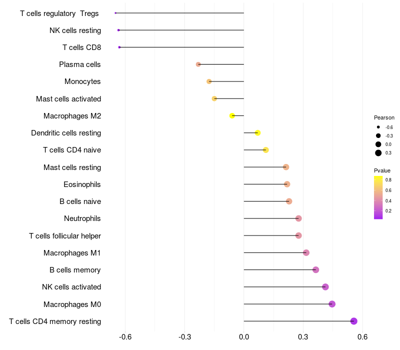 Lollipop of ULK2 expression and immune infiltrating cell level correlation result in HBV+ Liver cirrhosis samples