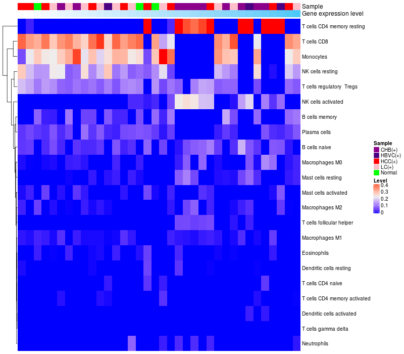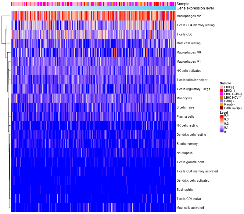 Liver hepatocellular carcinoma HCV (HBV+)(86), Liver hepatocellular carcinoma HCV (HBV-)(19), Liver hepatocellular carcinoma (HBV+)(209), Liver hepatocellular carcinoma (HBV+)(60), Paracancerous HCV (HBV+)(4), Paracancerous (HBV-)(28), Paracancerous (HBV+)(18) |