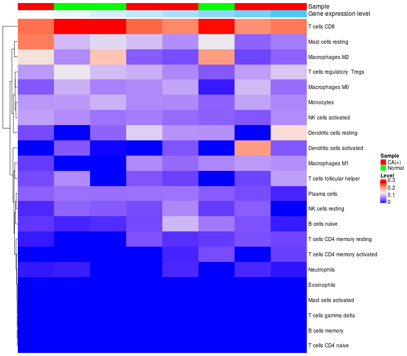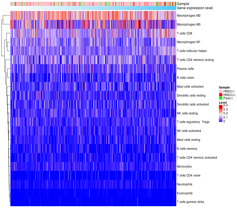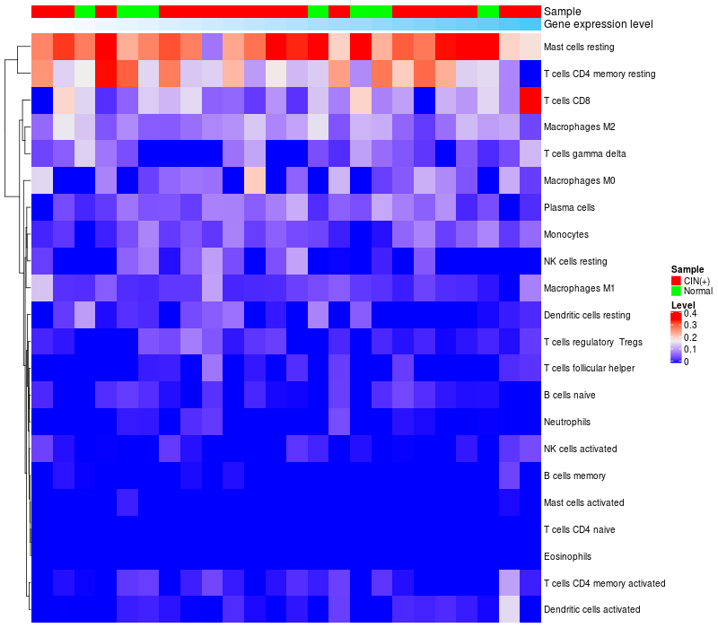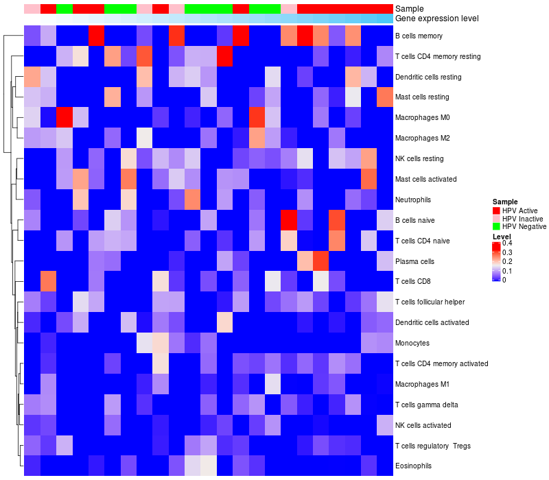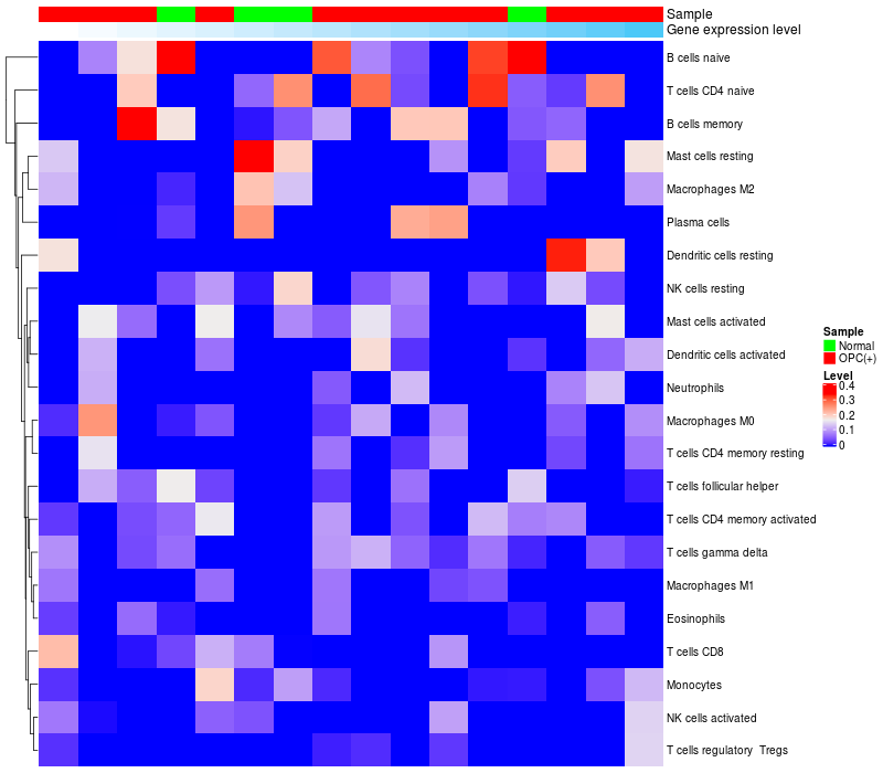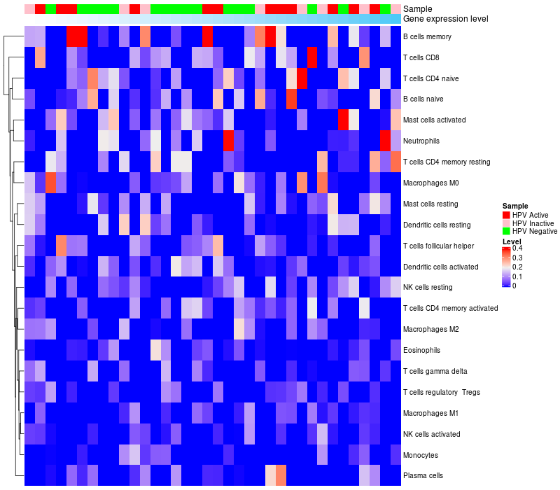 Lollipop of UOX expression and immune infiltrating cell level correlation result in HPV+ samples