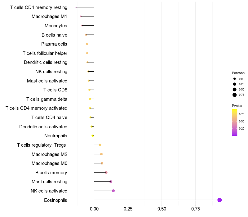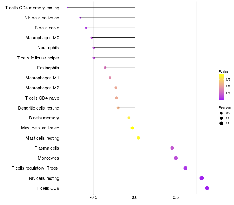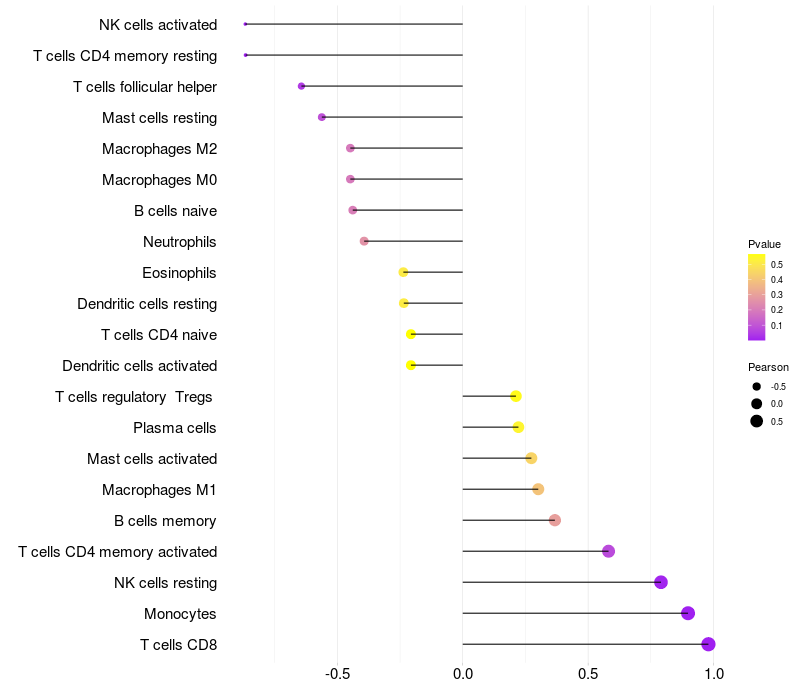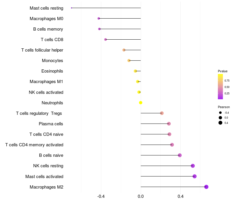 Lollipop of UPK3B expression and immune infiltrating cell level correlation result in HBV+ Liver cirrhosis samples