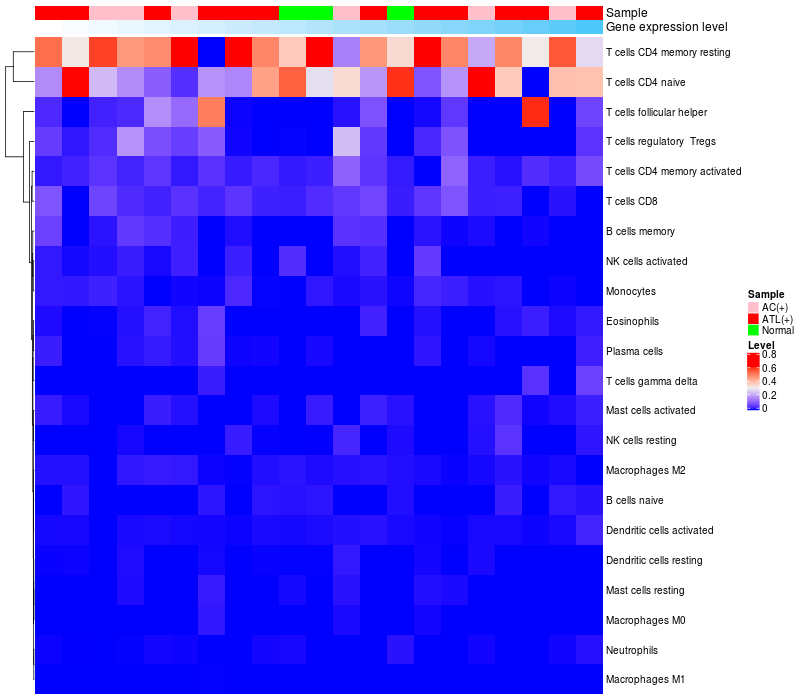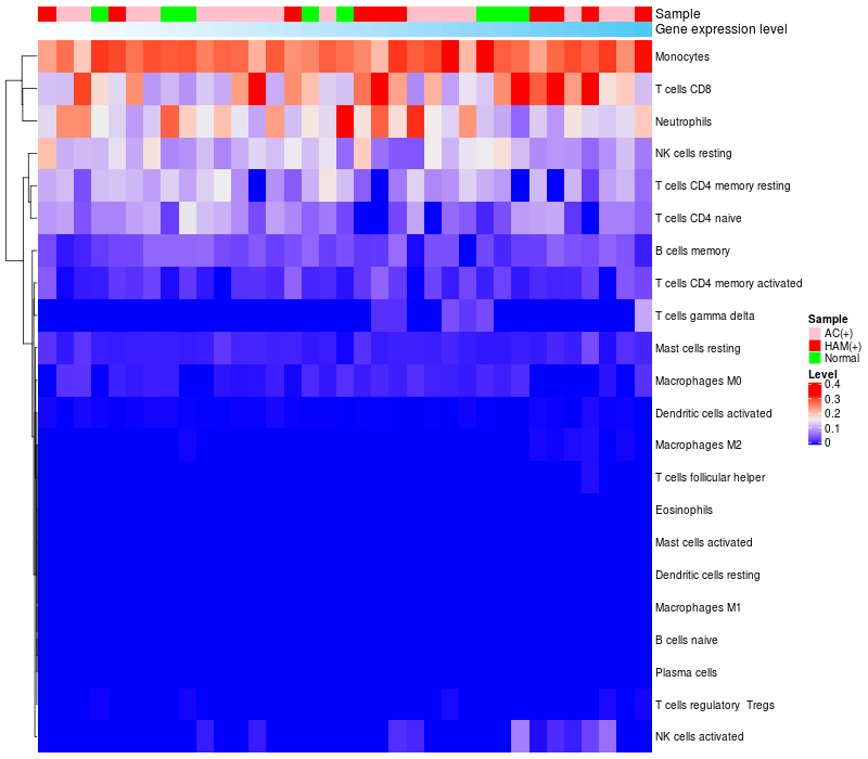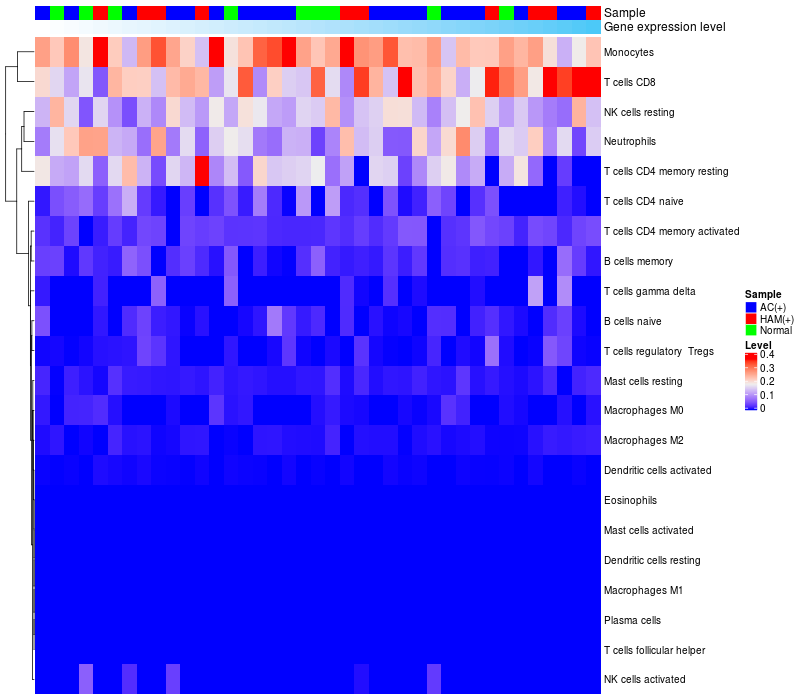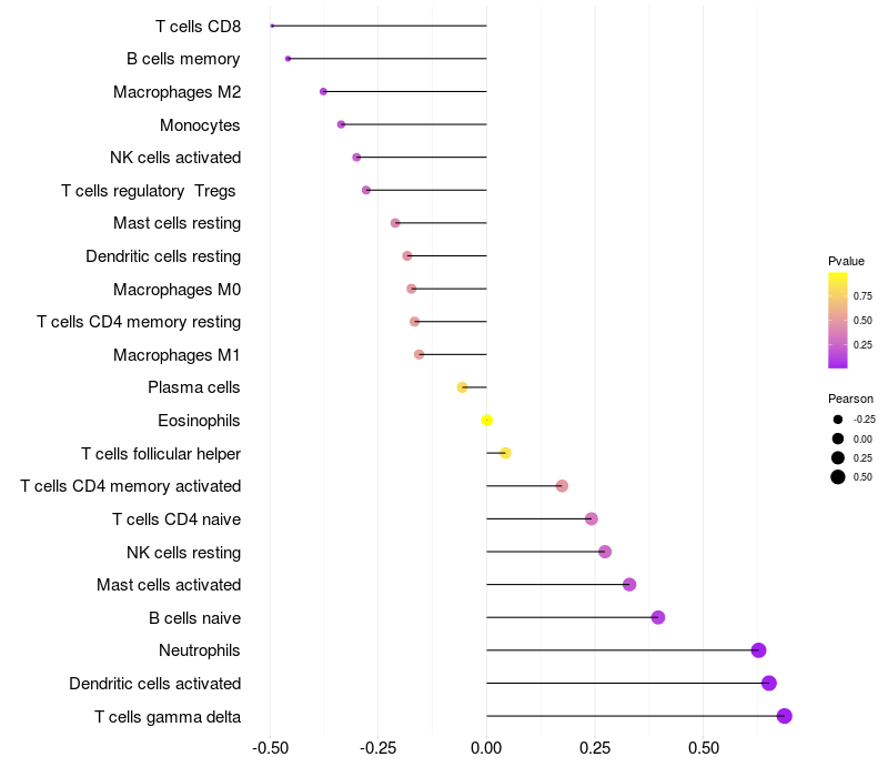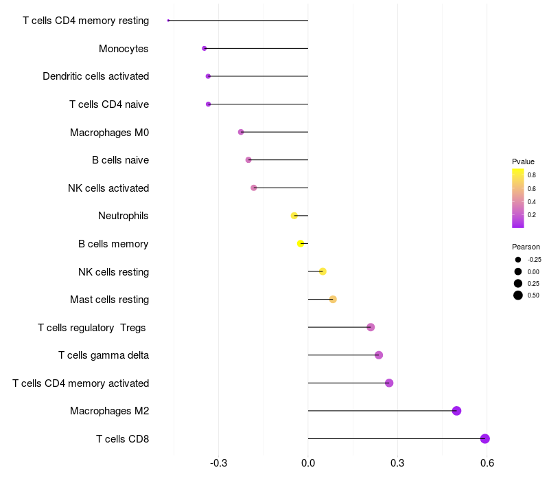 Lollipop of UQCRB expression and immune infiltrating cell level correlation result in HTLV1+ samples