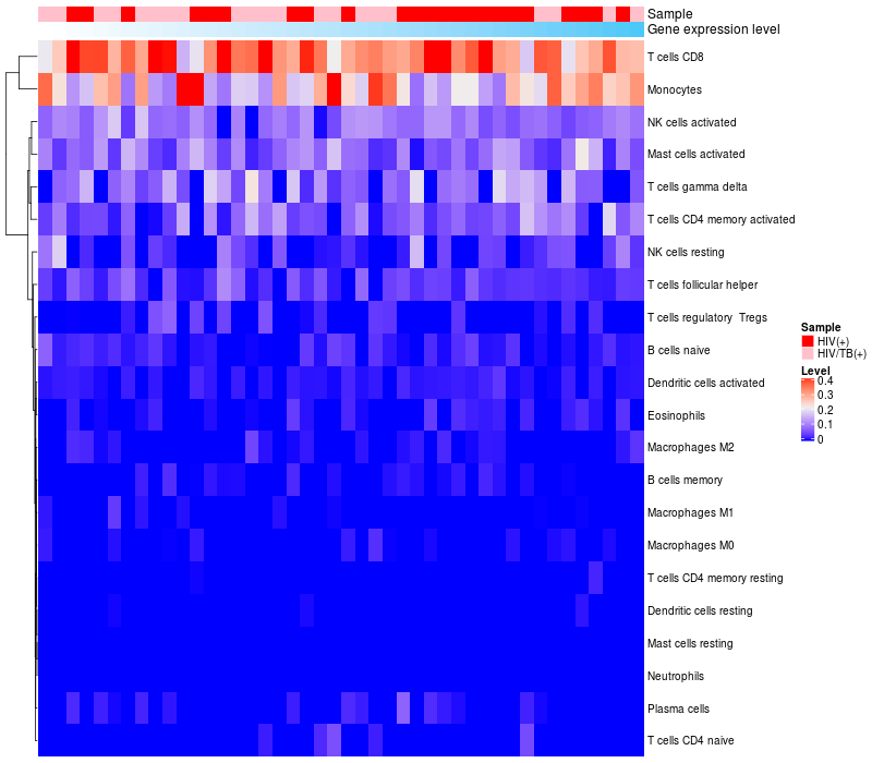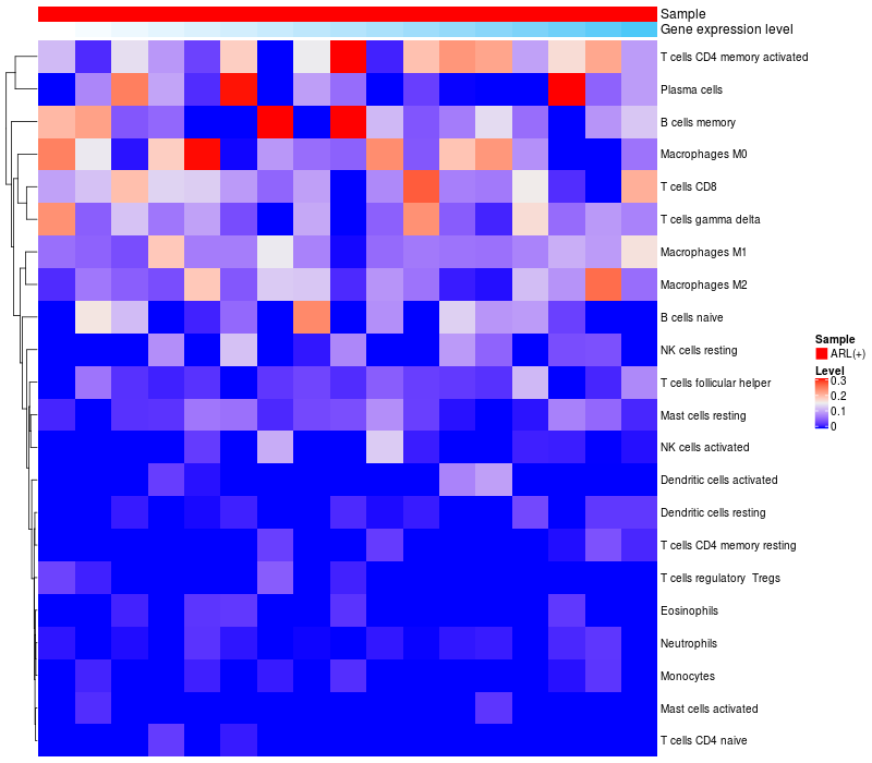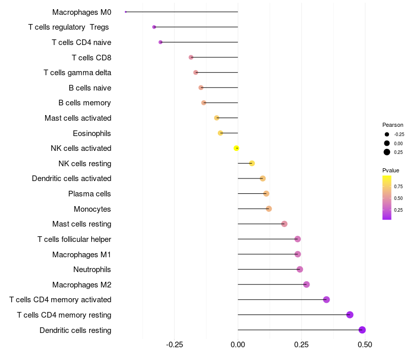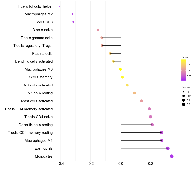 Relationship between gene expression and immune infiltrating cell level