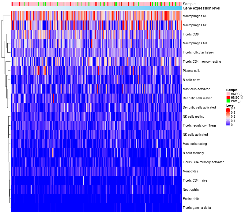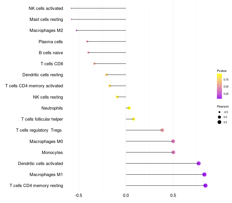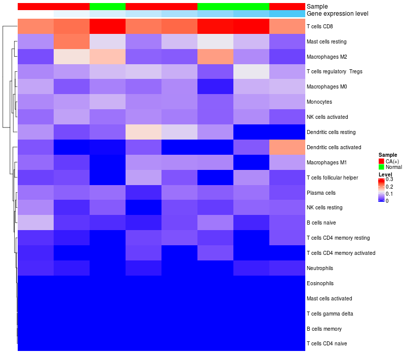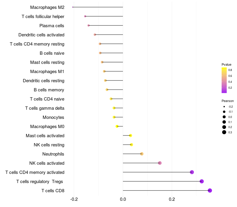 Relationship between gene expression and immune infiltrating cell level