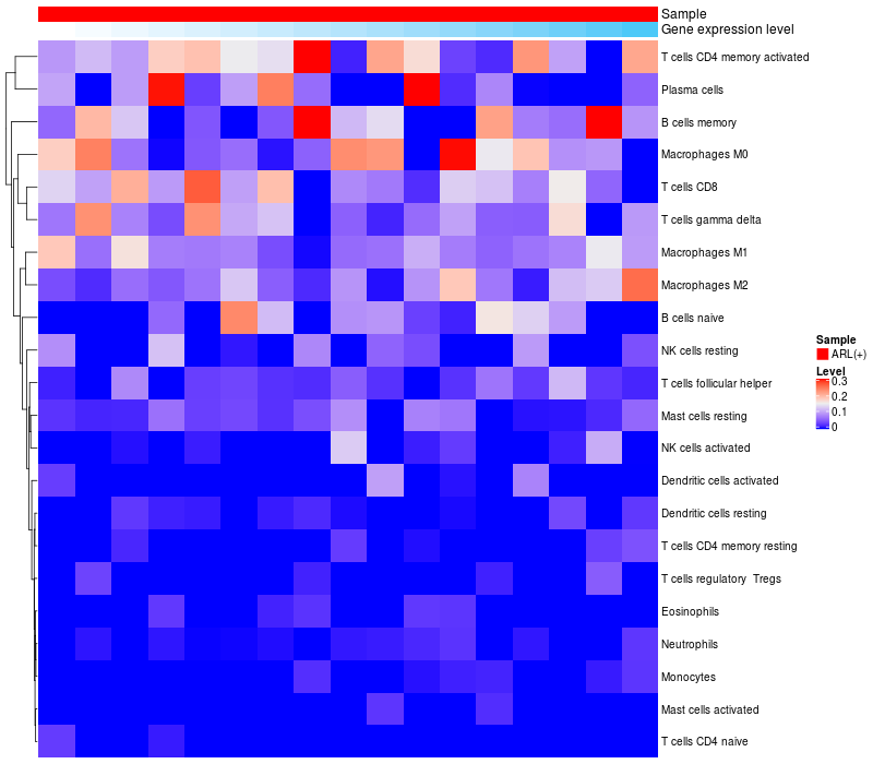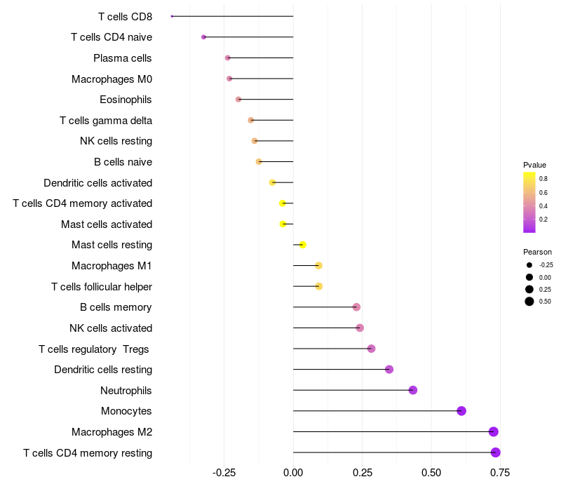 Relationship between gene expression and immune infiltrating cell level
