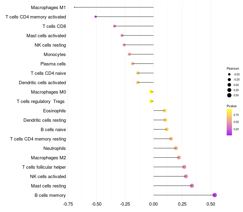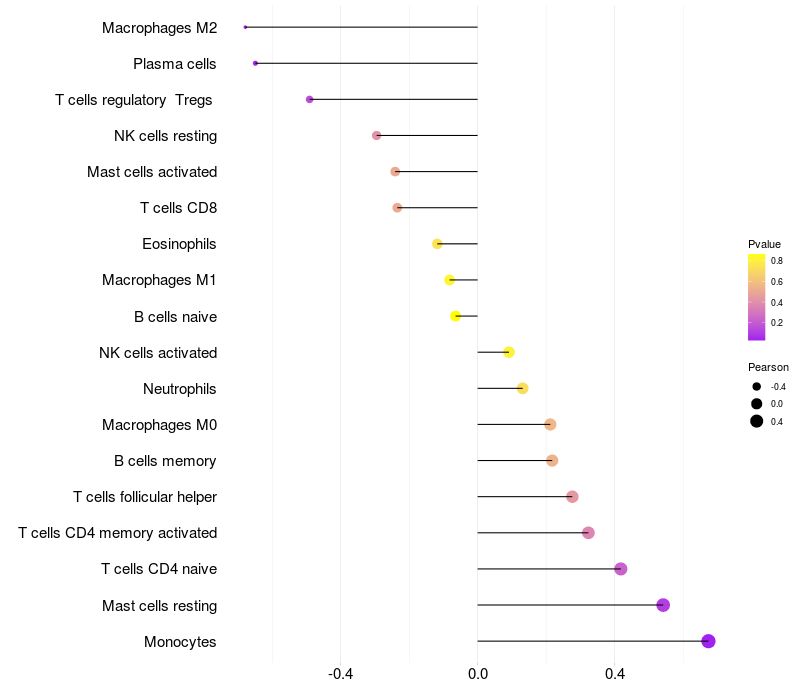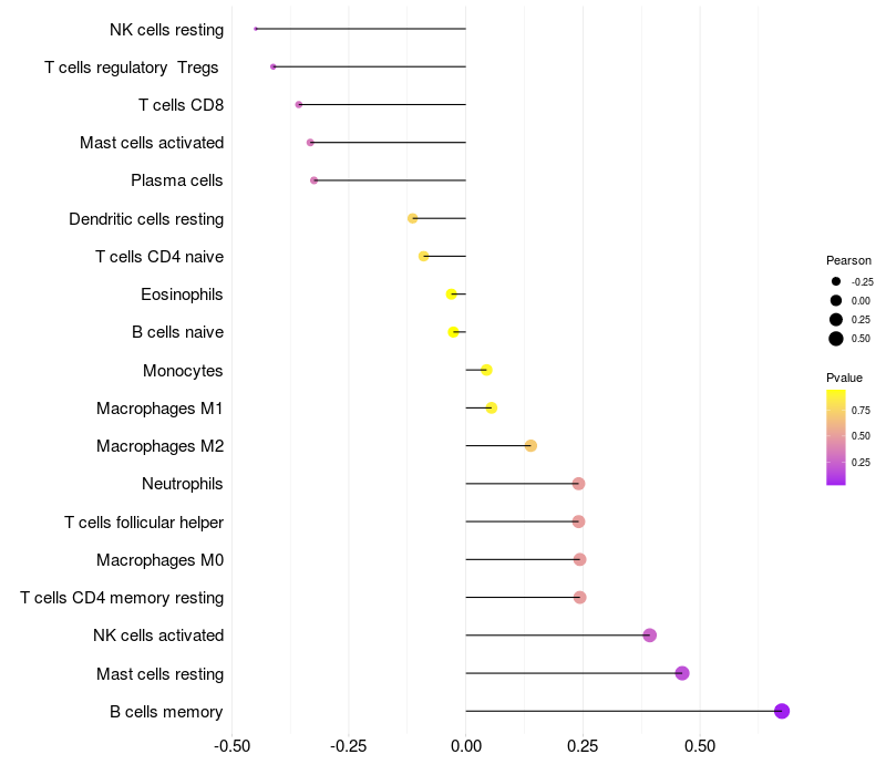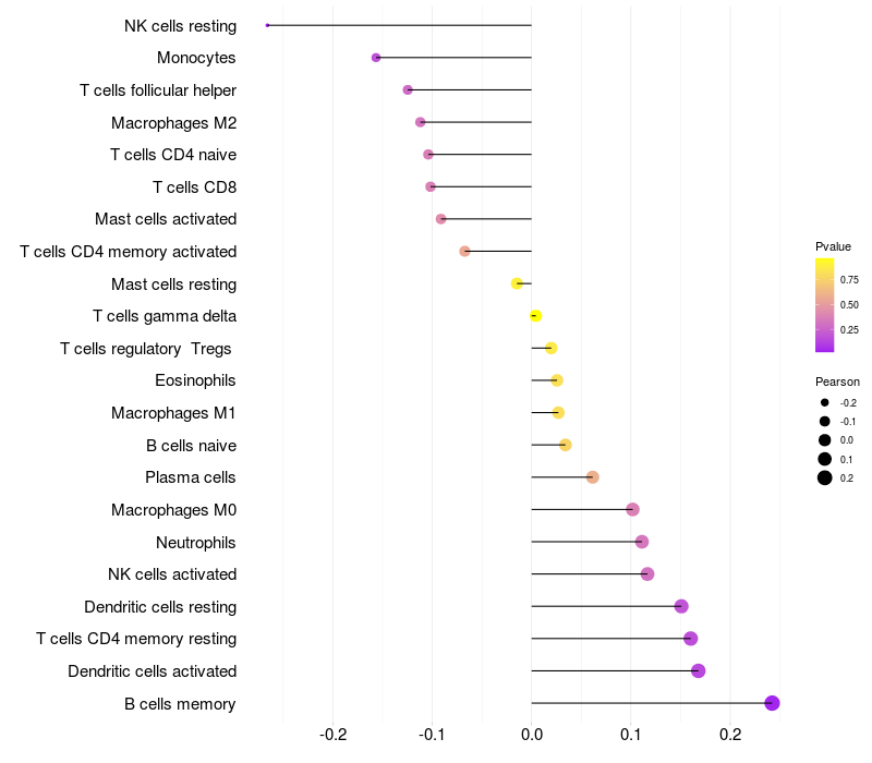 Lollipop of USP34 expression and immune infiltrating cell level correlation result in HBV+ samples