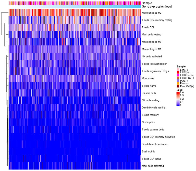 Relationship between gene expression and immune infiltrating cell level