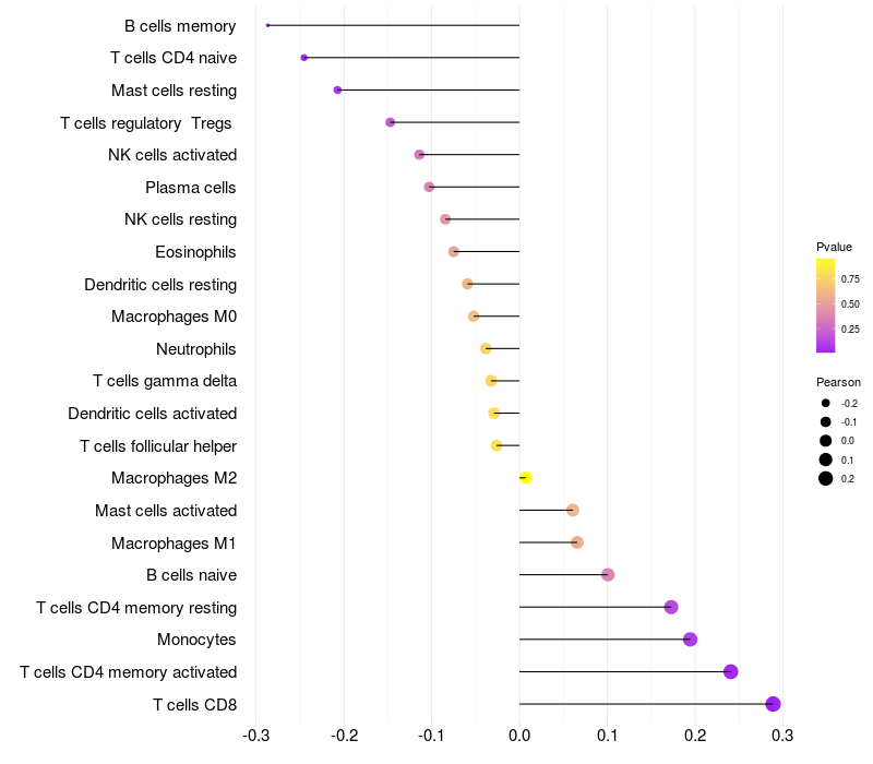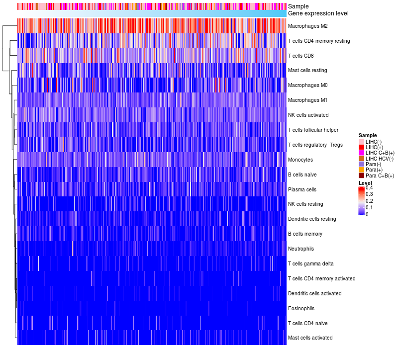 Relationship between gene expression and immune infiltrating cell level