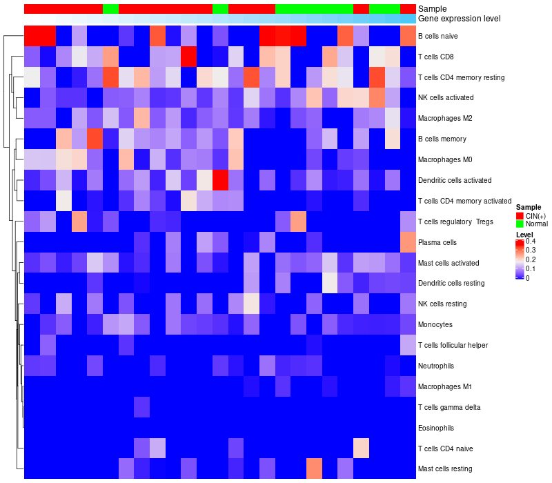 Normal (10), Cervical intraepithelial neoplasia (HPV+)(15) |