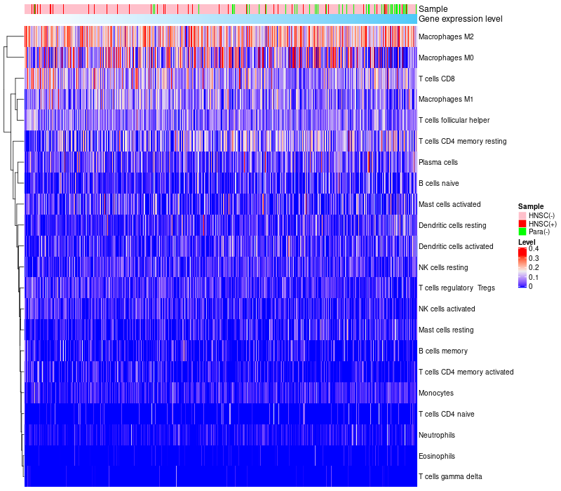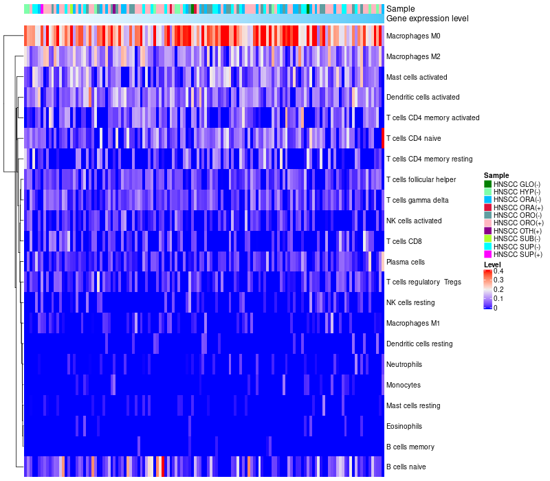 Head and Neck squamous cell carcinoma(HPV-)(483),Head and Neck squamous cell carcinoma(HPV+)(39),Paracancerous(HPV-)(44) |