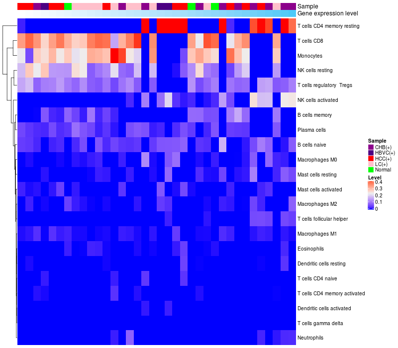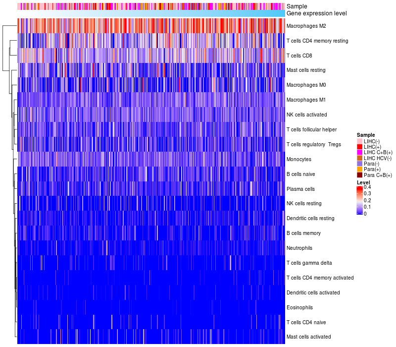 Liver hepatocellular carcinoma HCV (HBV+)(86), Liver hepatocellular carcinoma HCV (HBV-)(19), Liver hepatocellular carcinoma (HBV+)(209), Liver hepatocellular carcinoma (HBV+)(60), Paracancerous HCV (HBV+)(4), Paracancerous (HBV-)(28), Paracancerous (HBV+)(18) |
