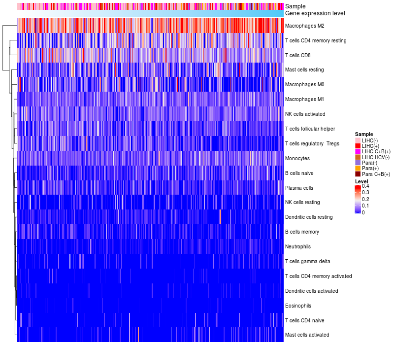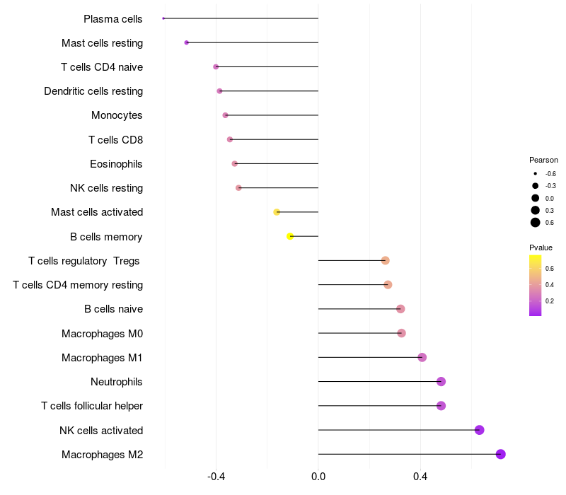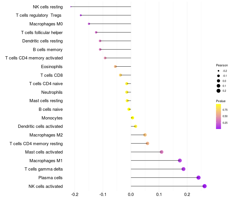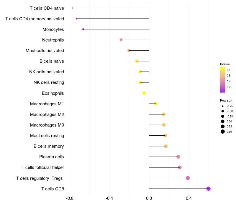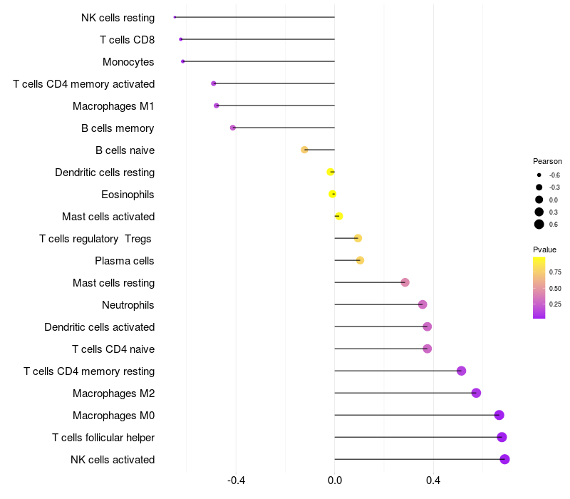 Relationship between gene expression and immune infiltrating cell level